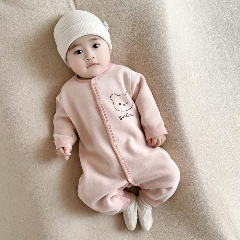 • 핑크색 따뜻한 벨벳 바인딩 점프수트