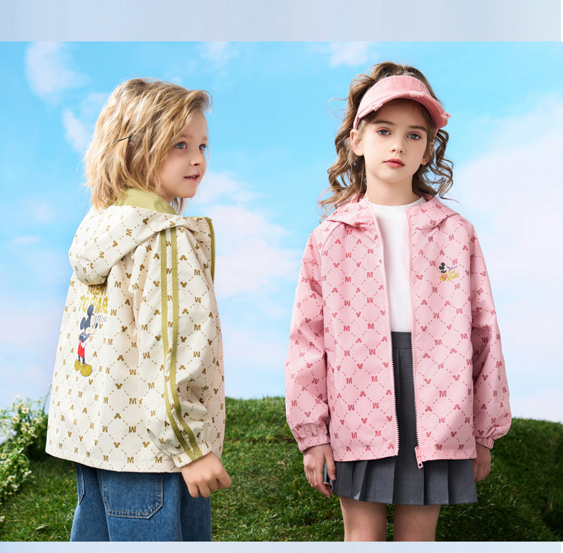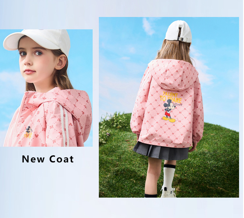 디즈니 아동용 양면 재킷 2024 봄 가을용 삼중 방수 후드 한국 스타일 아동용 루즈핏 재킷