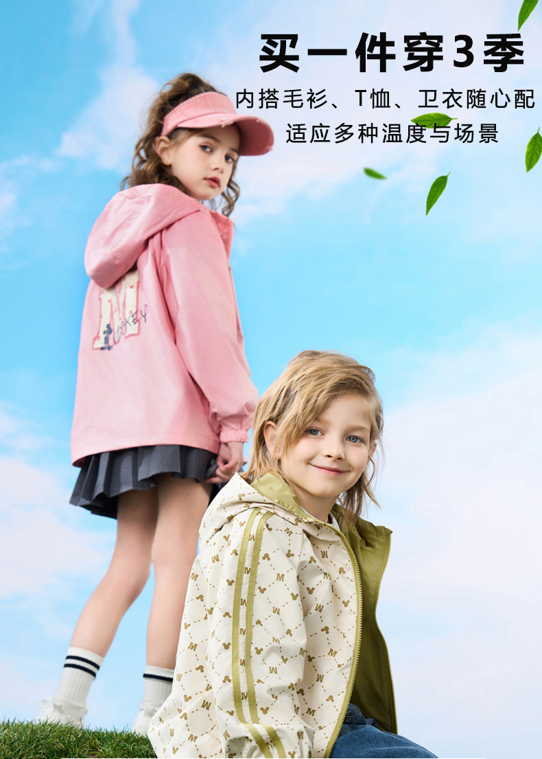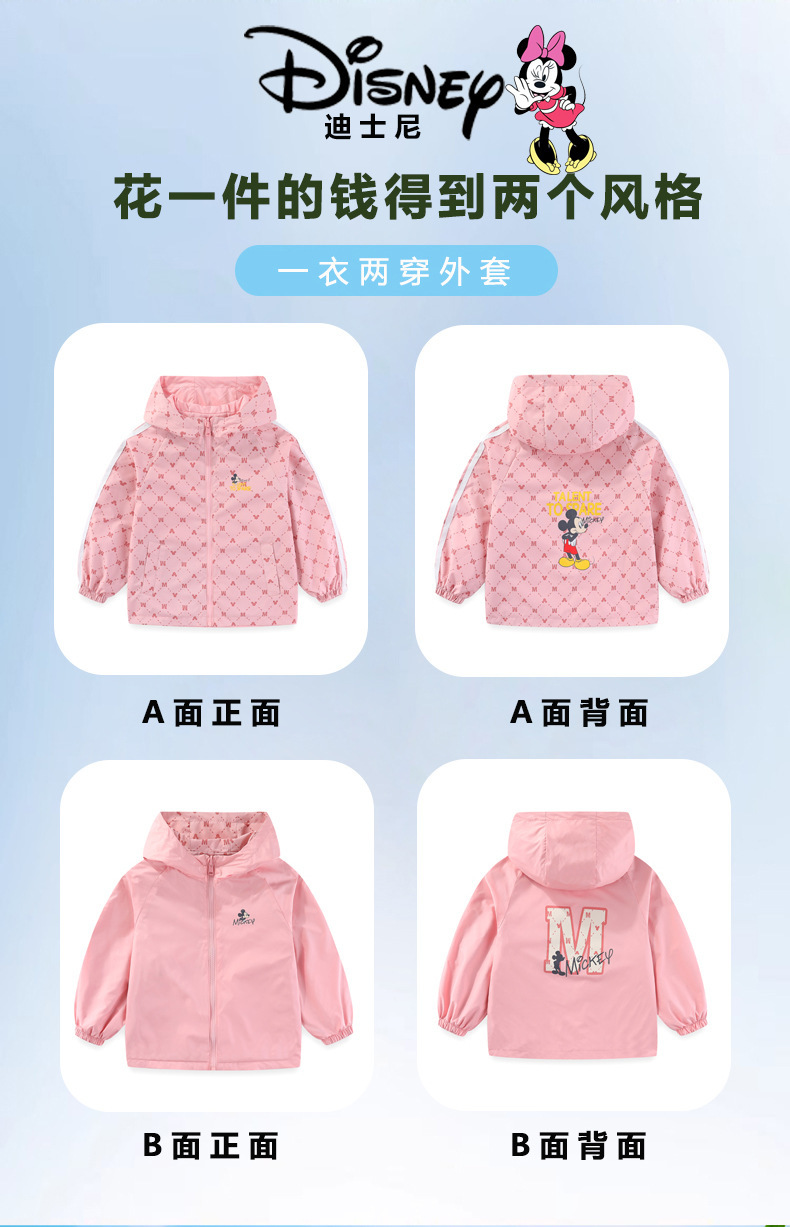 디즈니 아동용 양면 재킷 2024 봄 가을용 삼중 방수 후드 한국 스타일 아동용 루즈핏 재킷스토어 가기