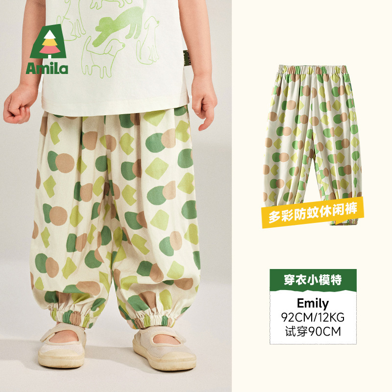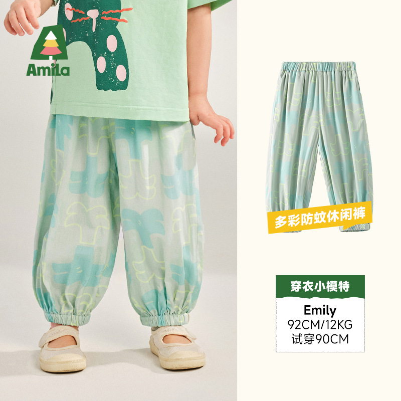 어린이 의류 2025 여름 새로운 어린이 바지 발가락 캐주얼 통기성 아기 모기 바지스토어 가기