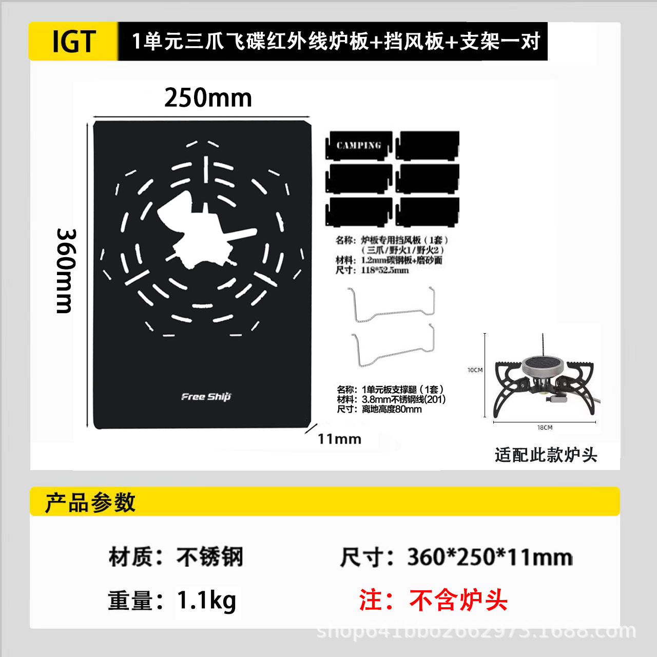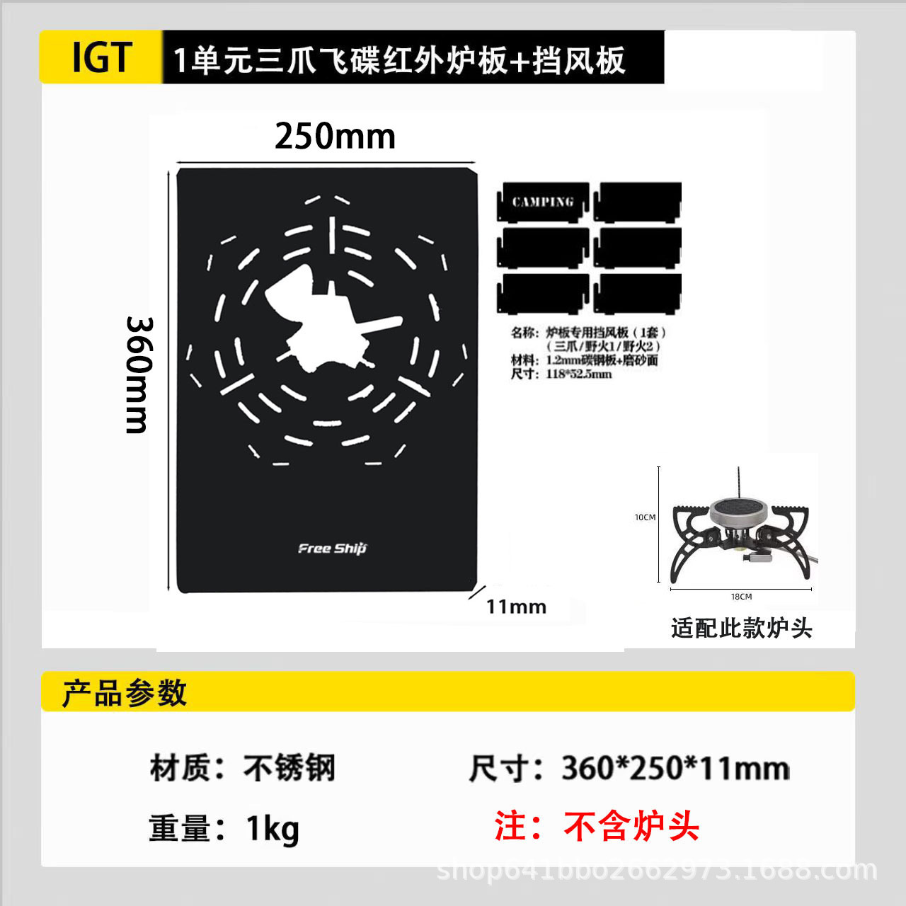• 1개 3발 플라잉 접시 스토브 적외선 스토브 플레이트 + 윈드 디플렉터