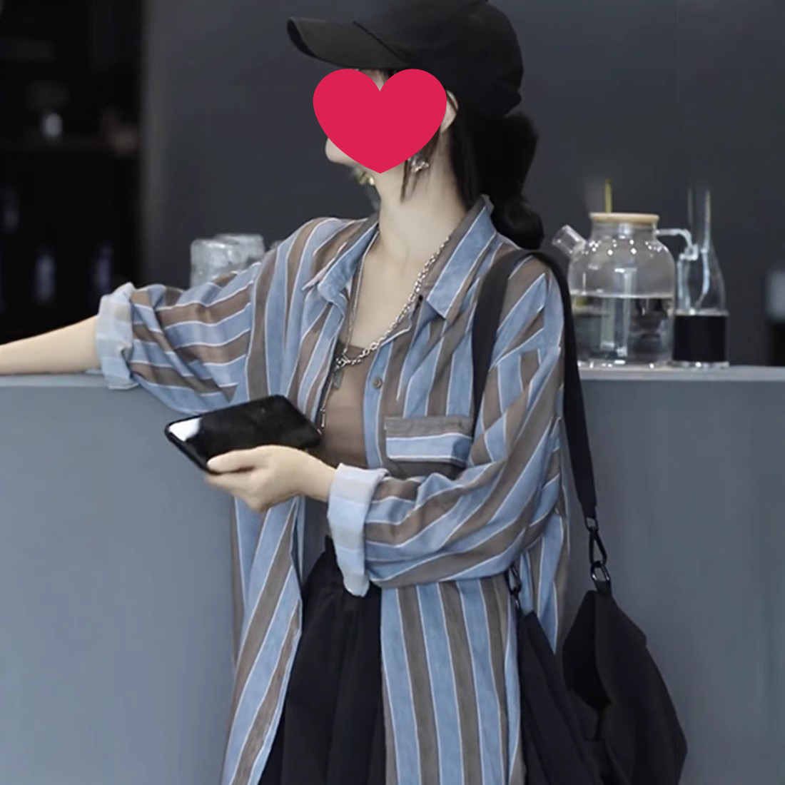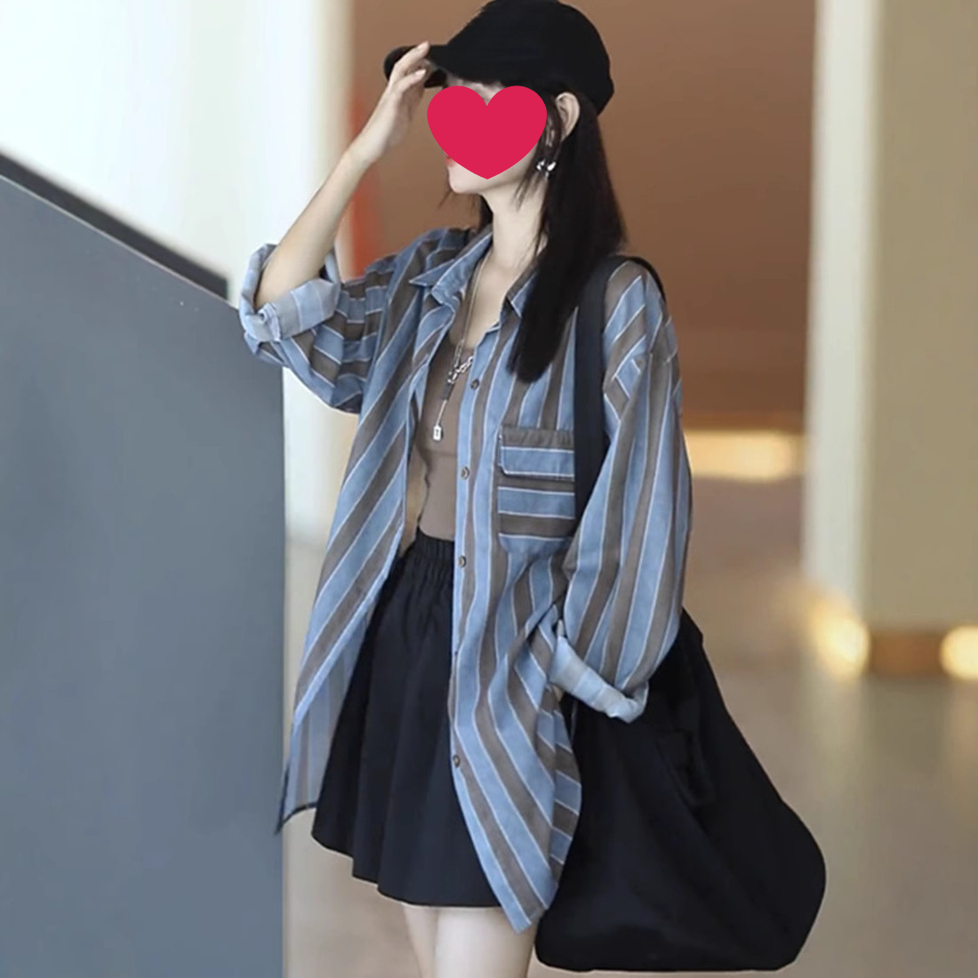 줄무늬 셔츠 여성용 긴팔 여름 한국 스타일 폭발 poLo 칼라 캐주얼 올 매치 얇은 선 스크린 재킷 셔츠 탑