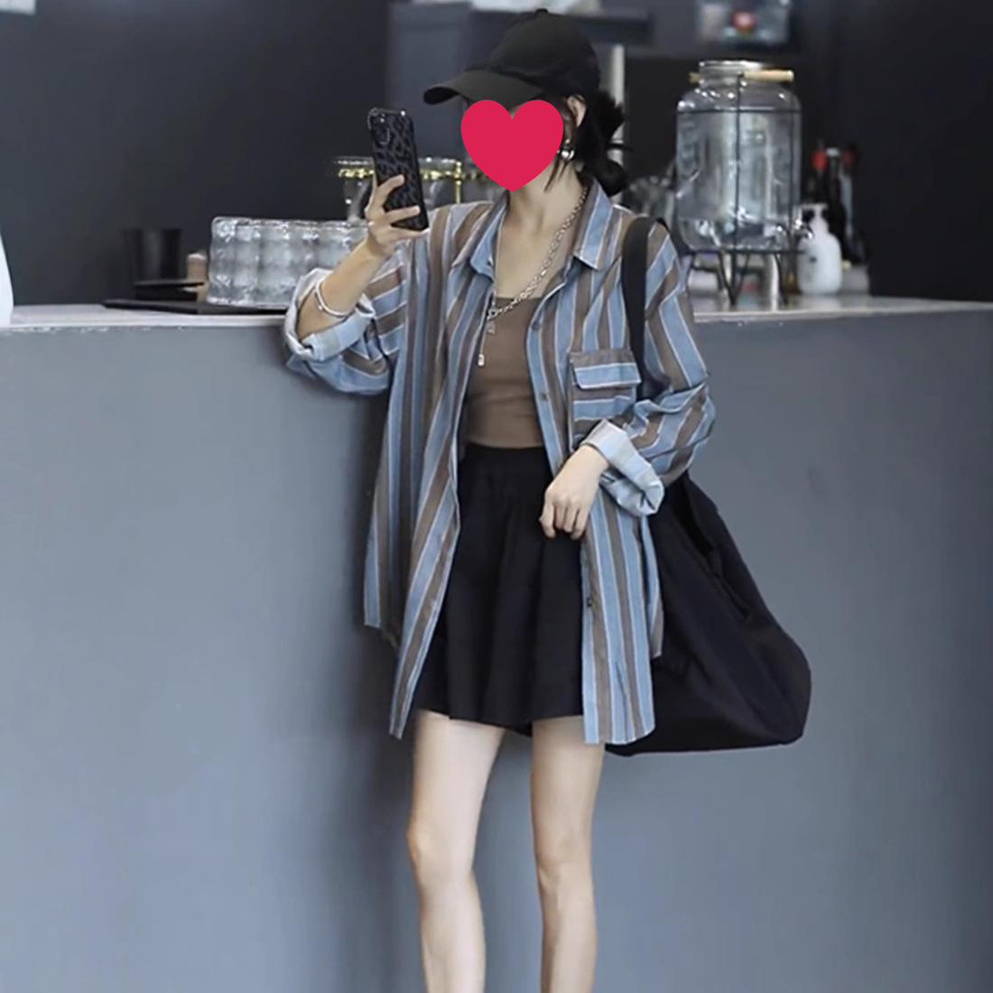 줄무늬 셔츠 여성용 긴팔 여름 한국 스타일 폭발 poLo 칼라 캐주얼 올 매치 얇은 선 스크린 재킷 셔츠 탑스토어 가기