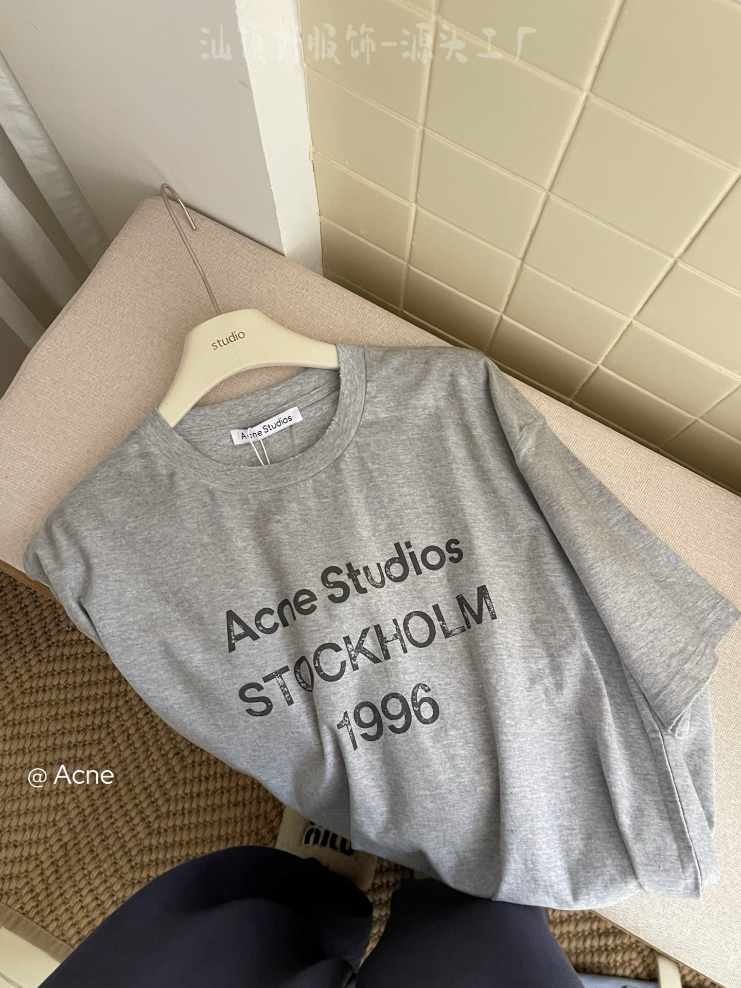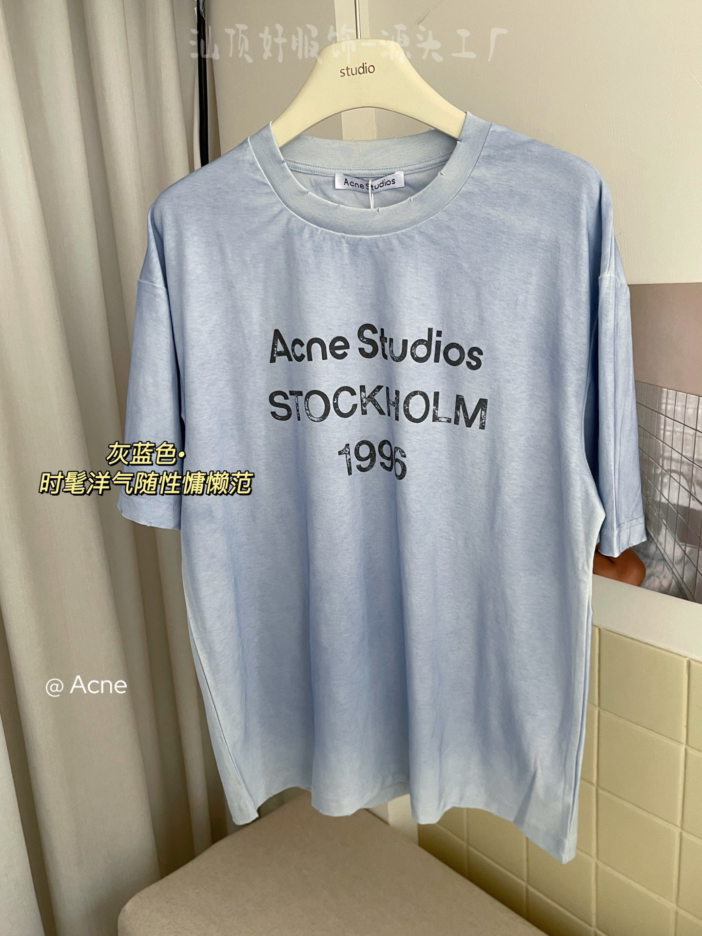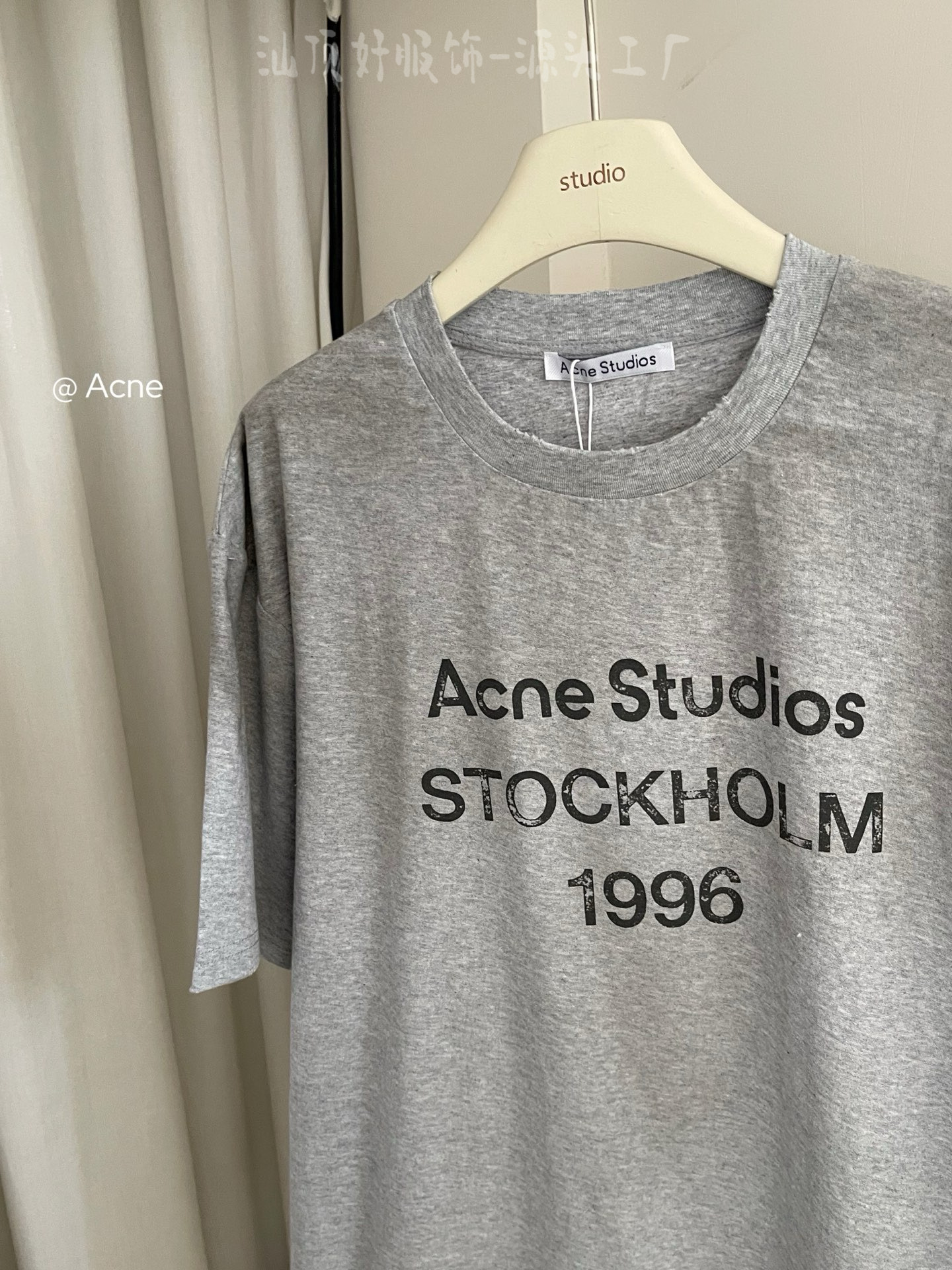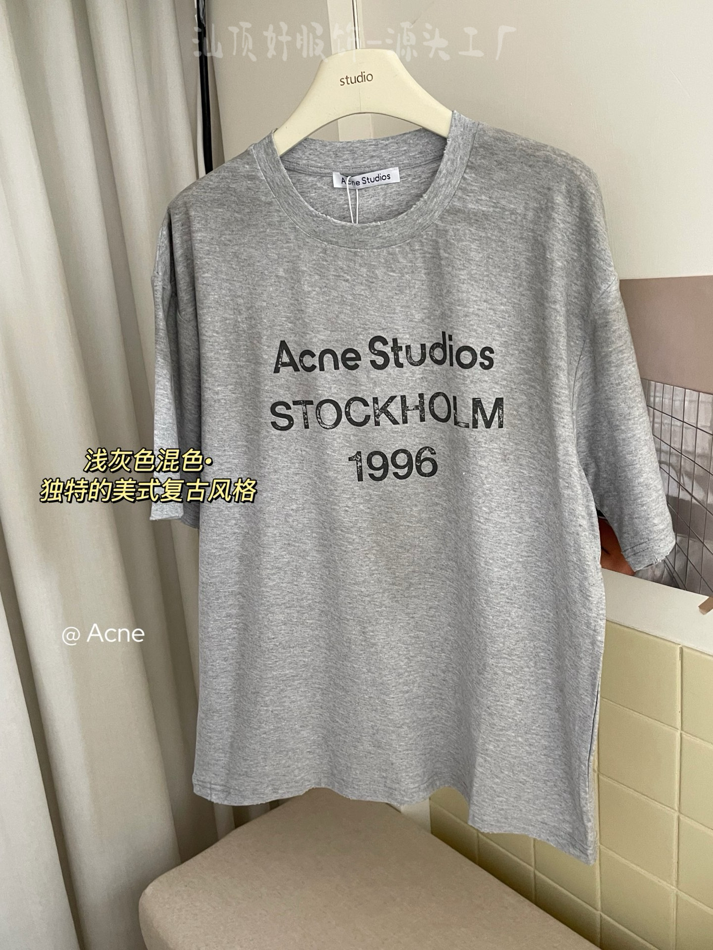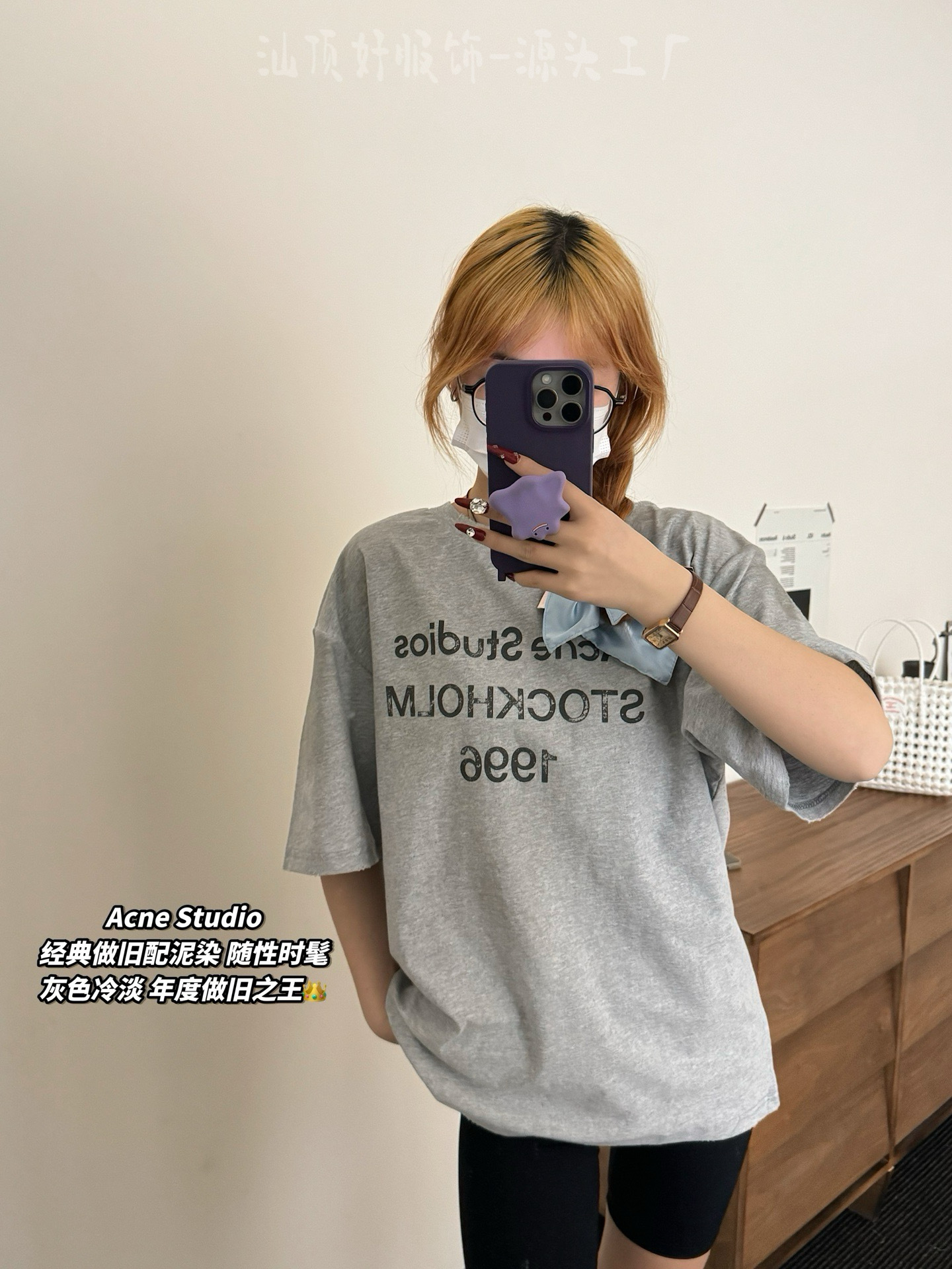 여드름 회색 라운드 넥 트렌디 브랜드 편지 남성과 여성을위한 새로운 하이 스트리트 반팔 티셔츠 올드 루즈 프린트 2025스토어 가기