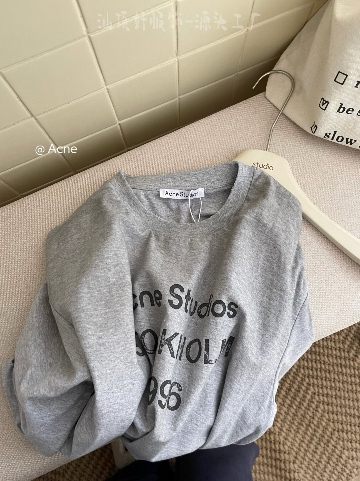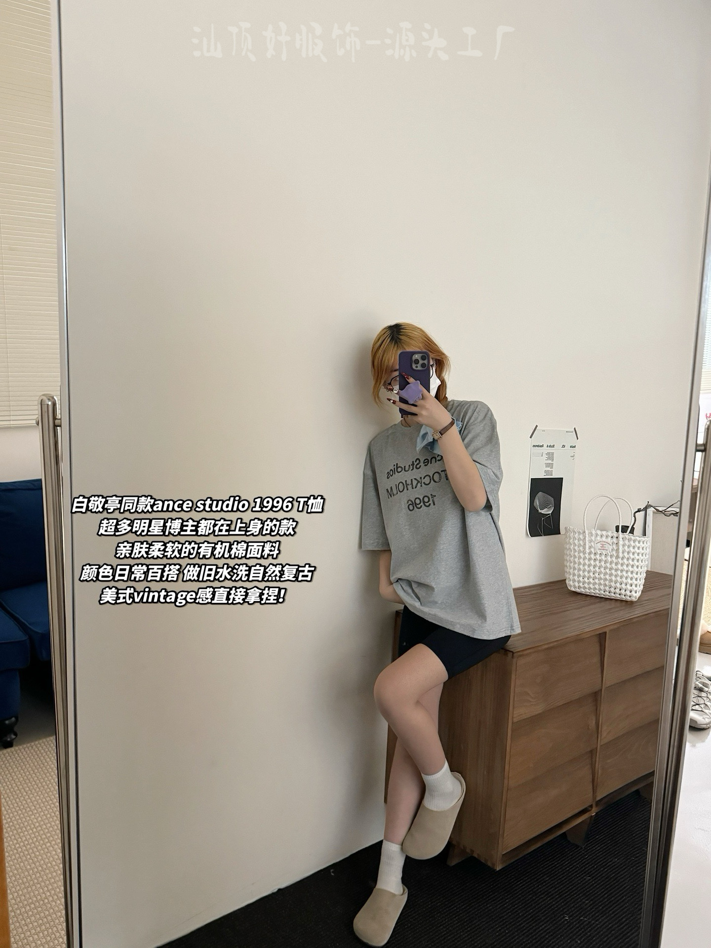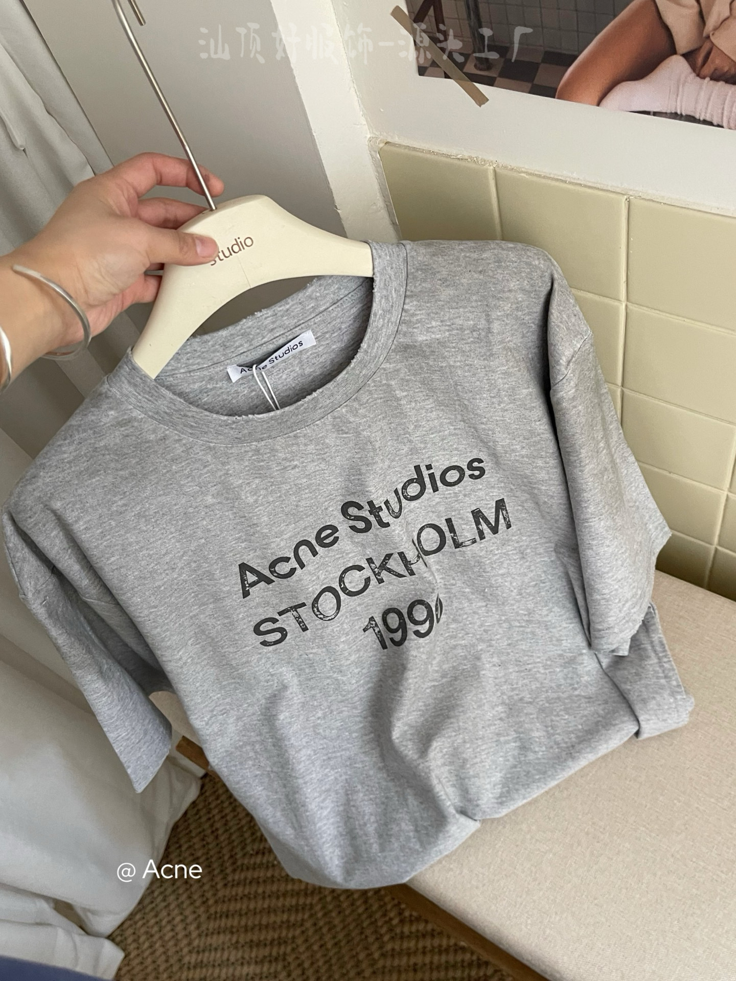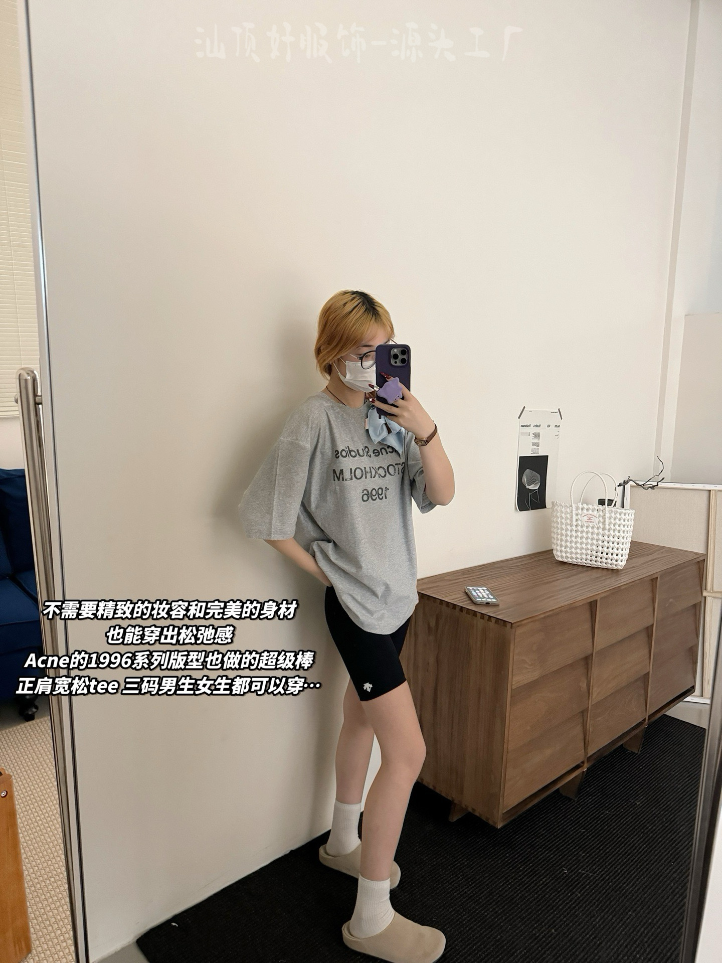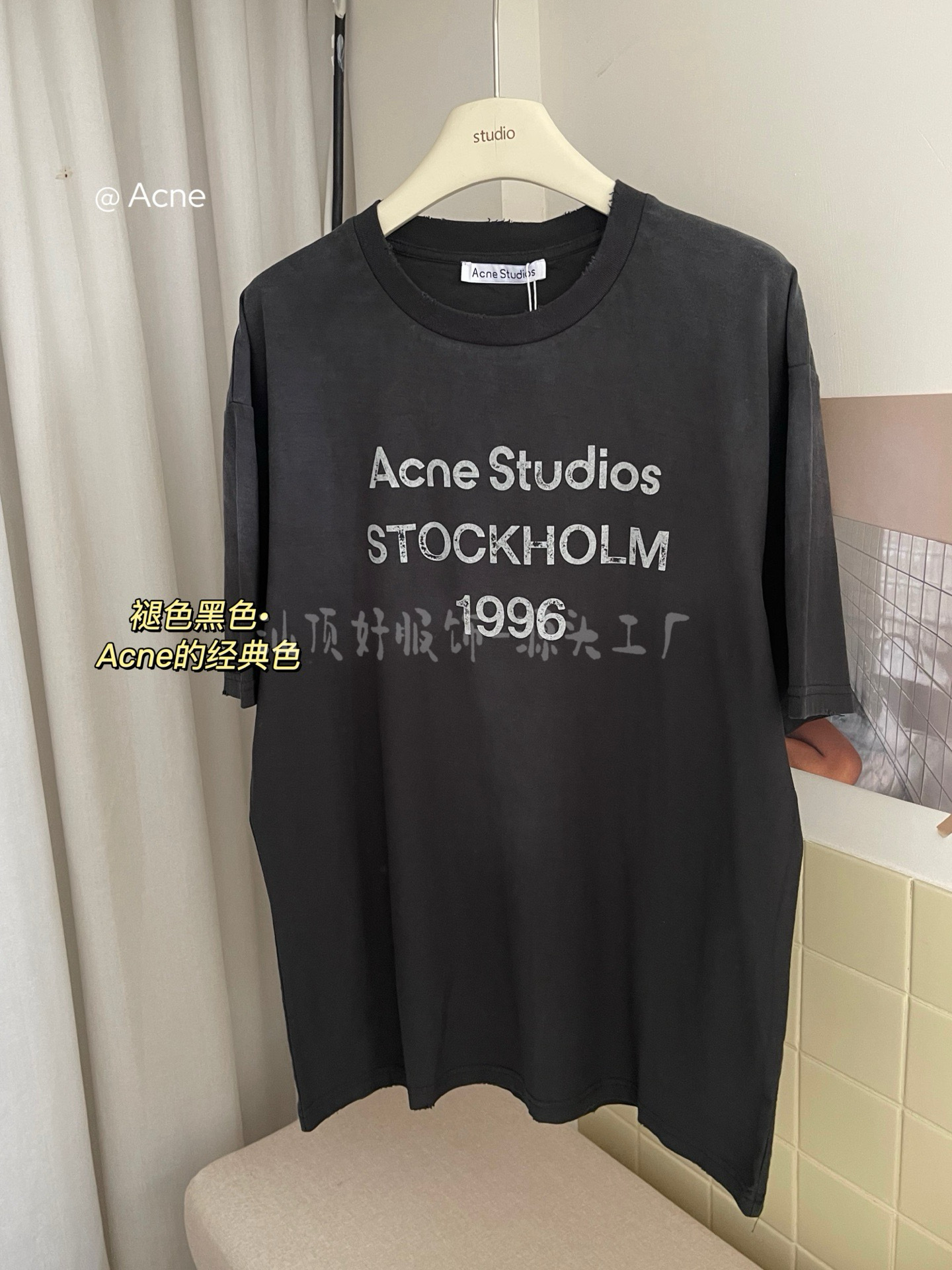 여드름 회색 라운드 넥 트렌디 브랜드 편지 남성과 여성을위한 새로운 하이 스트리트 반팔 티셔츠 올드 루즈 프린트 2025스토어 가기