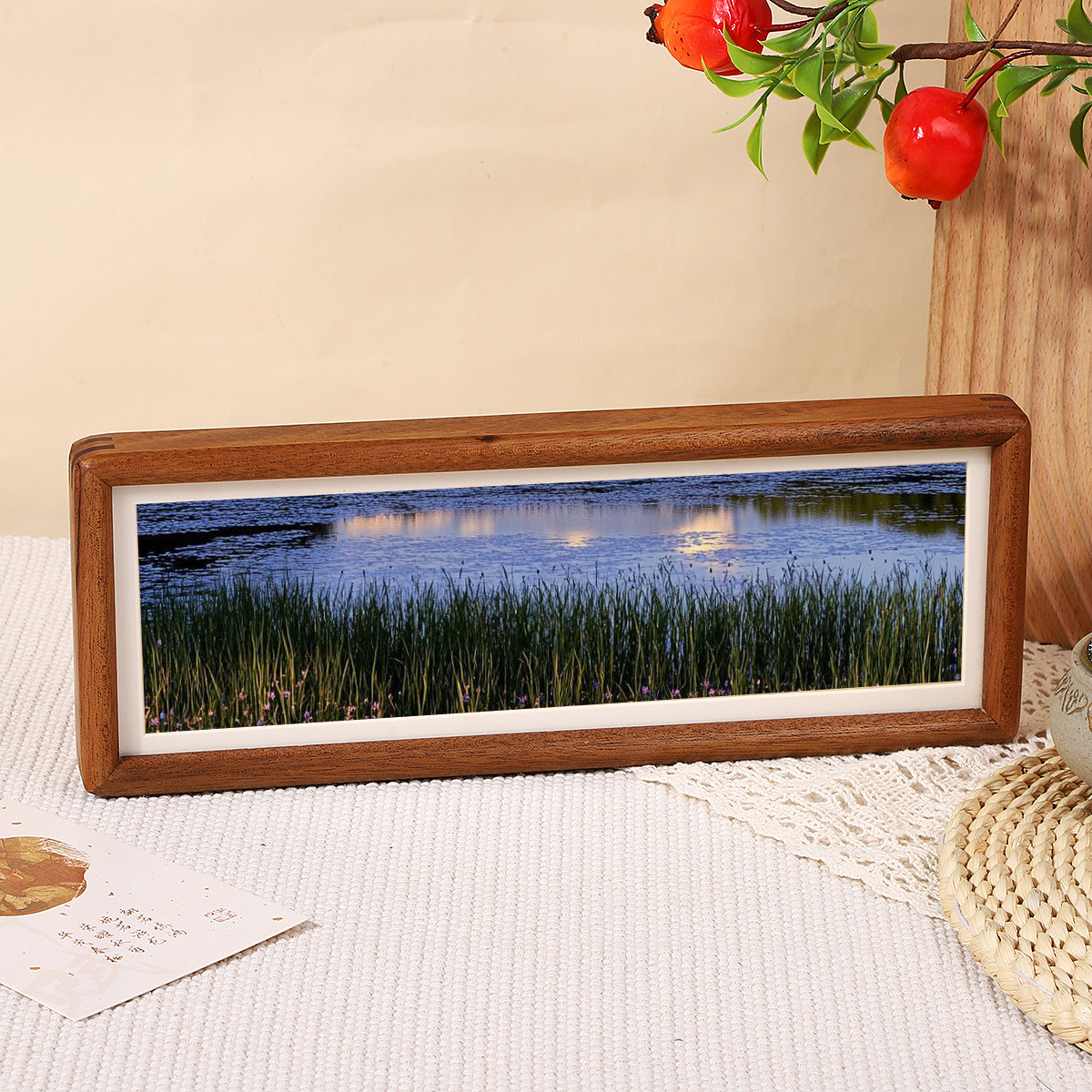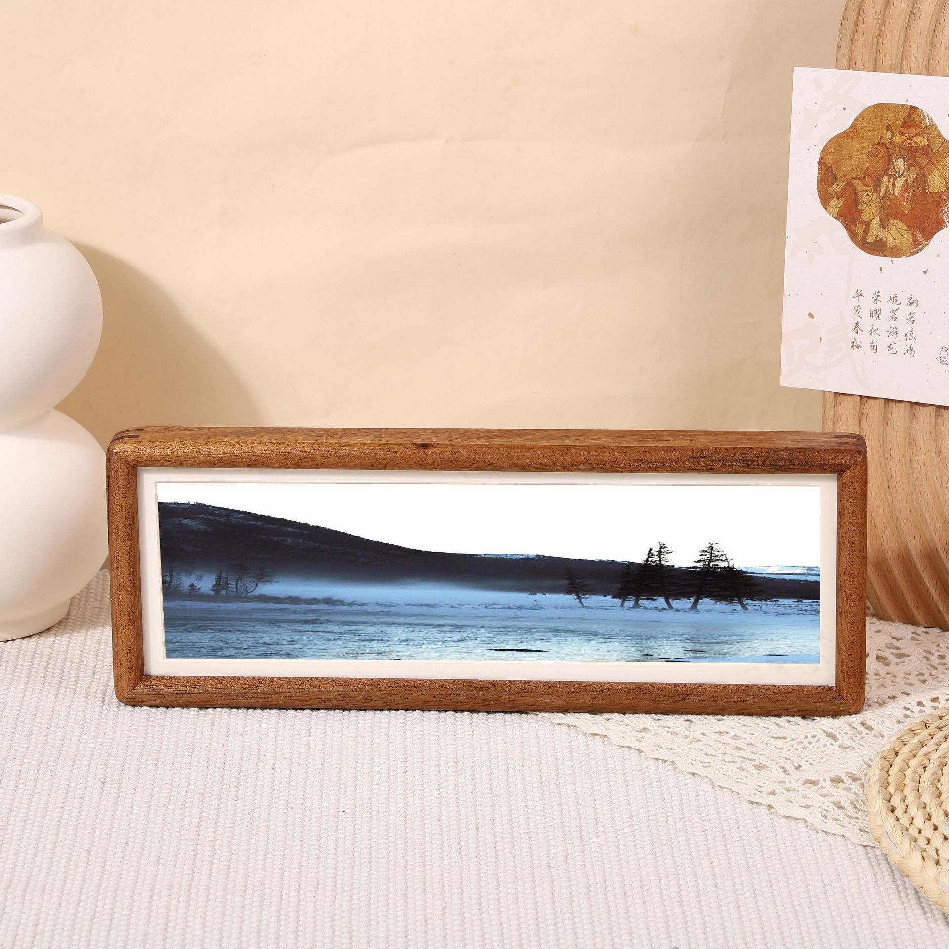 블랙 호두 솔리드 우드 Mortise 및 테논 서예 프레임 장식품 중공 3 차원 데스크탑 장식 DIY 홈 사진 장착 사진 프레임