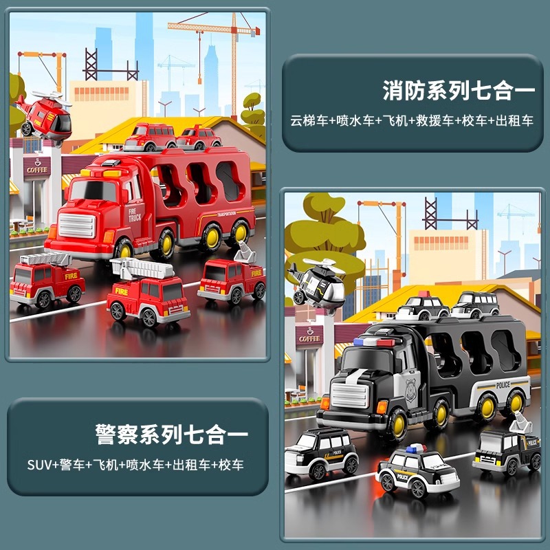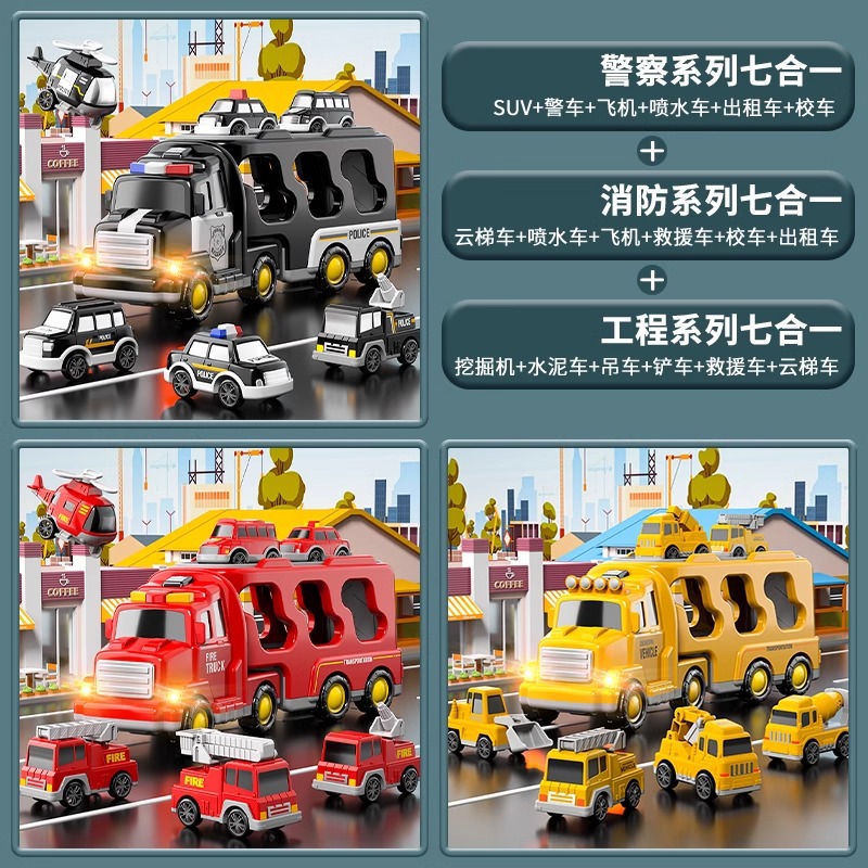 • 빅딜 조합 - 7-in-1 [경찰차 시리즈 + 소방 시리즈 + 엔지니어링 시리즈] 수송차 3대 + 차량 18대