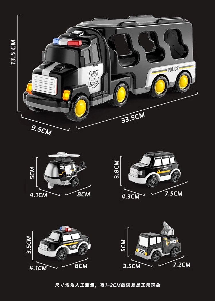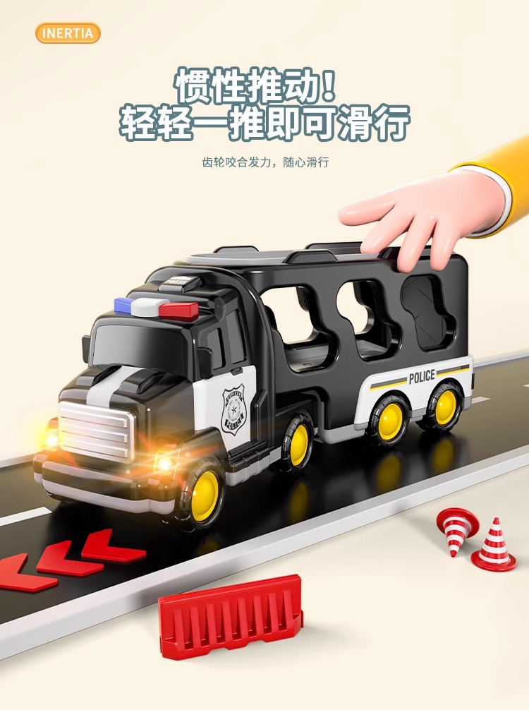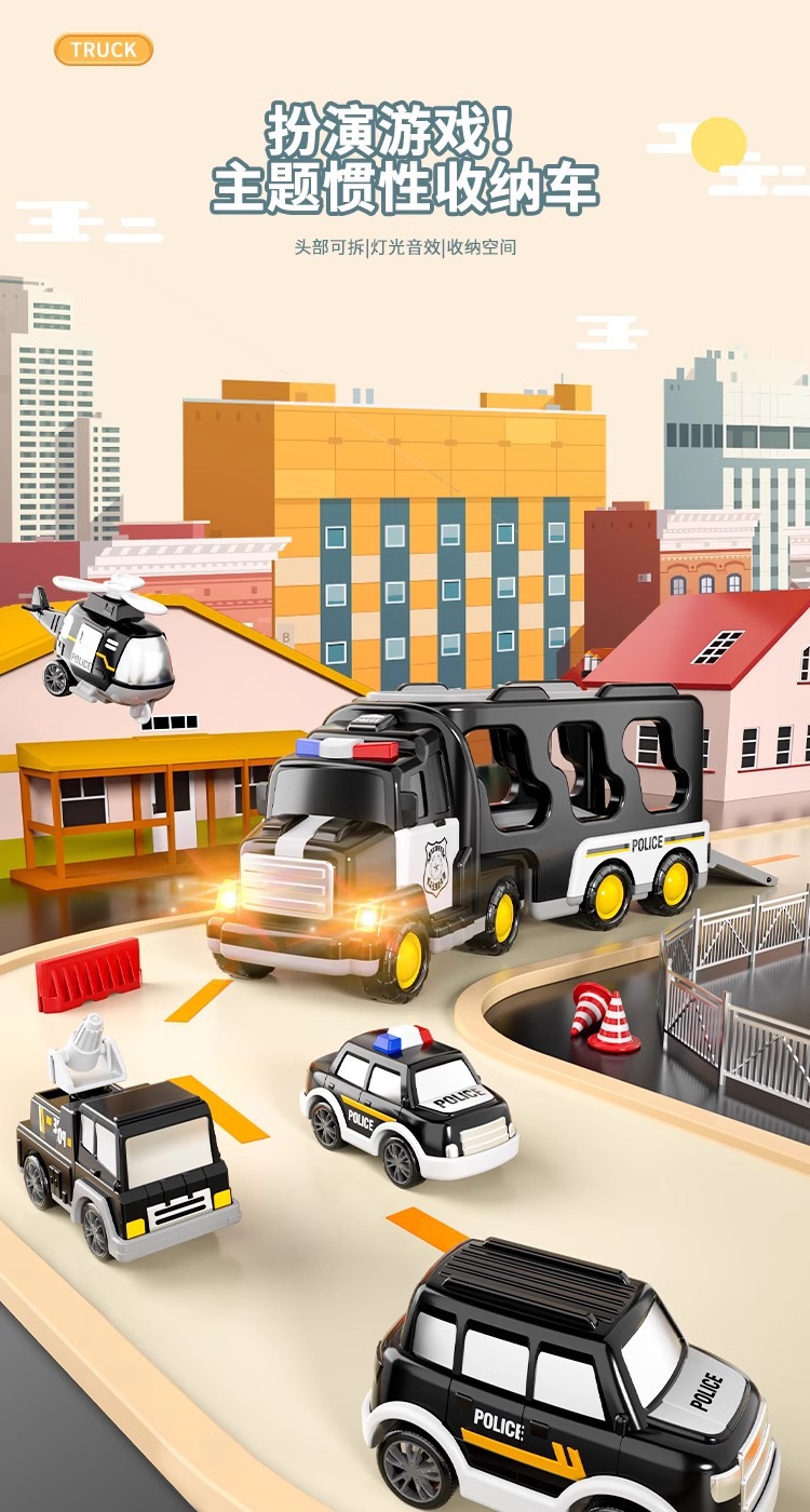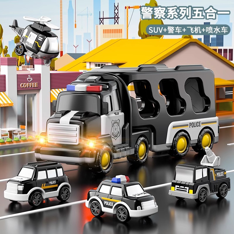 국경 간 경찰차 가벼운 음악 수송 차량 관성 소방차 컨테이너 엔지니어링 차량 어린이 장난감 아마존 폭발스토어 가기