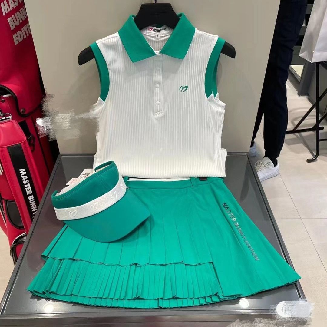 여름 골프 의류 티셔츠 여성용 폴로 셔츠 기질 민소매 슬림 핏 스포츠 빠른 건조 조끼 치마 세트스토어 가기