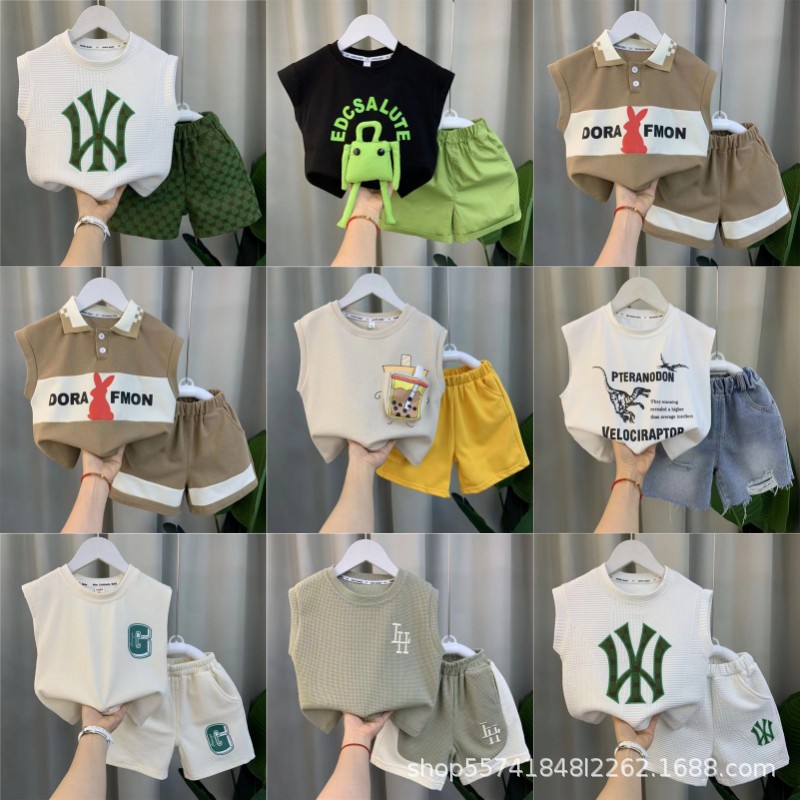 소년 여름 조끼 세트 2025 년 여름 새 소년 아기 쿨 유행 2 피스 어린이 민소매 옷스토어 가기