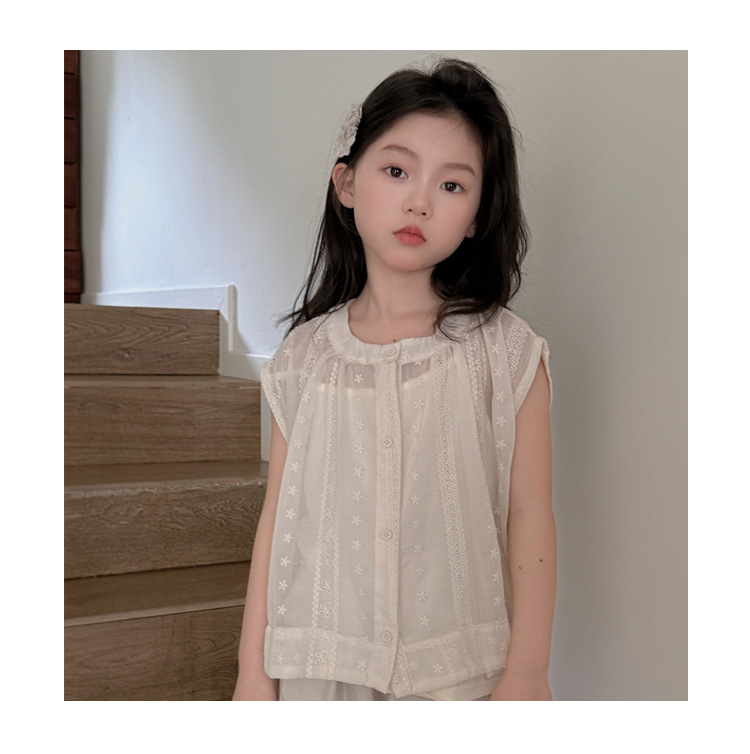 꽃과 구원 아동복 소녀상 2025 년 여름 신작 한국식 리얼 투피스 민소매 조끼 탑 올매치 트렌디 어린이 탑스토어 가기