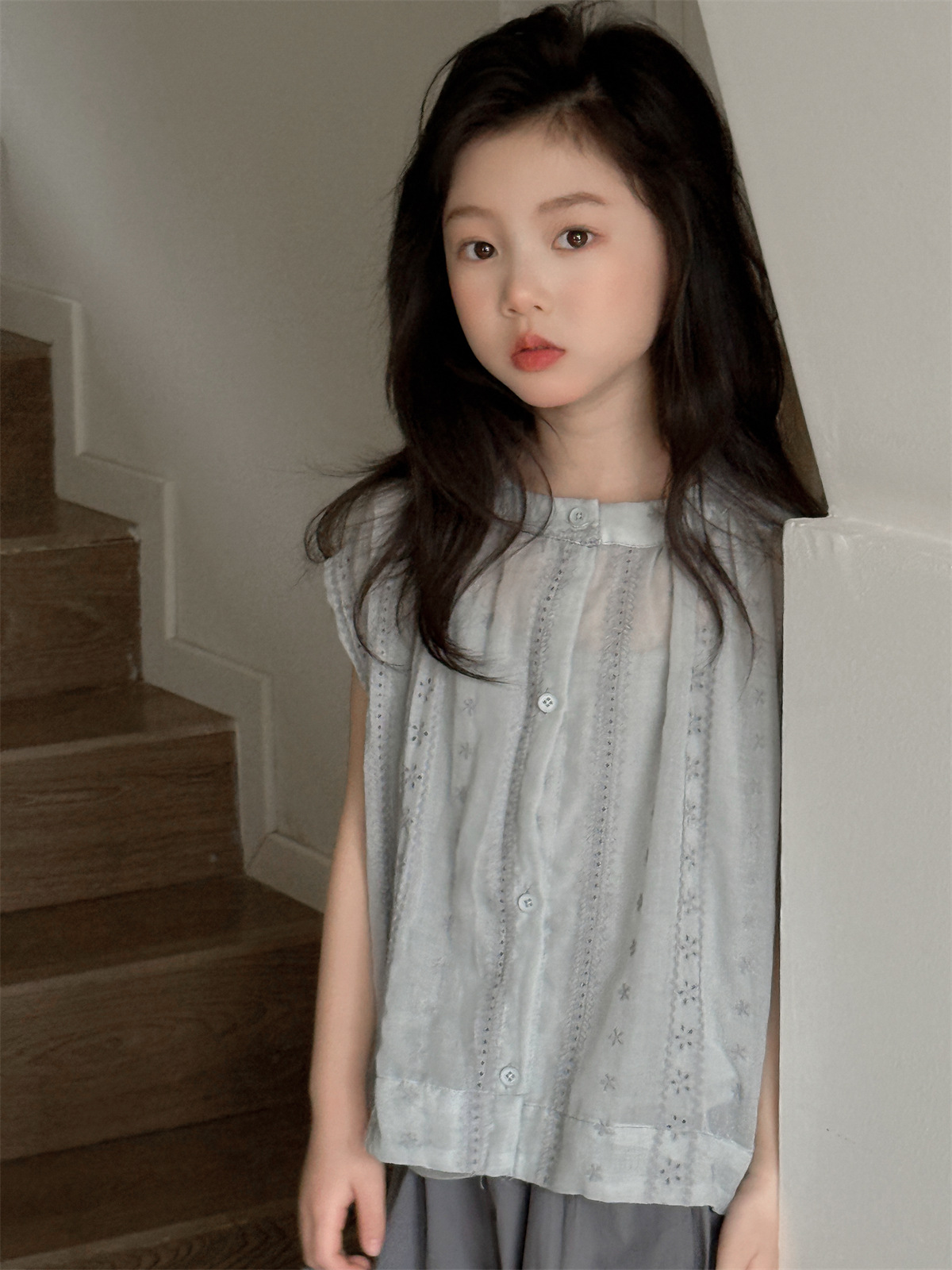 꽃과 구원 아동복 소녀상 2025 년 여름 신작 한국식 리얼 투피스 민소매 조끼 탑 올매치 트렌디 어린이 탑