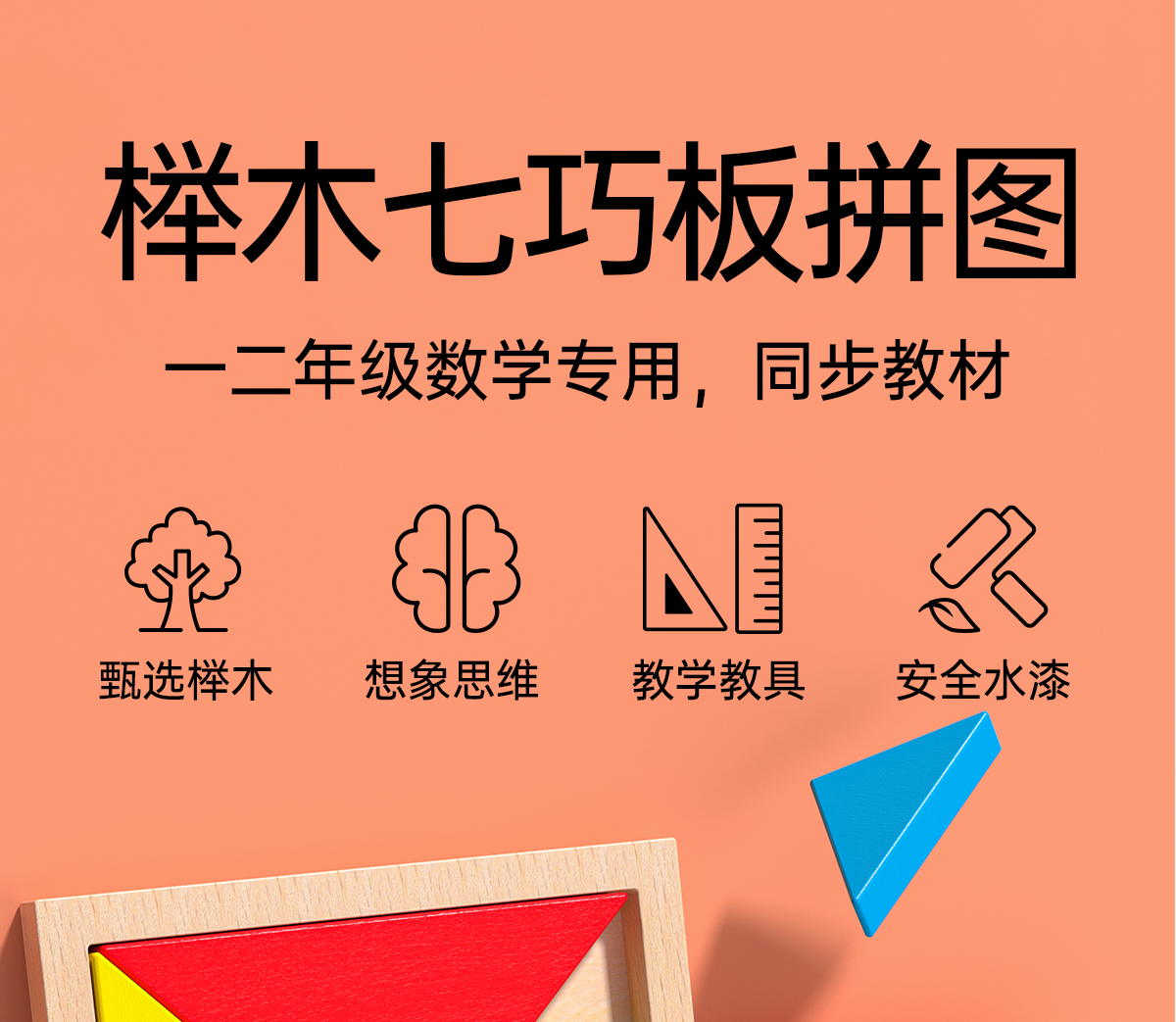 • 【14x14cm】너도밤나무 칠교놀이 + 6인 1 수학 교구