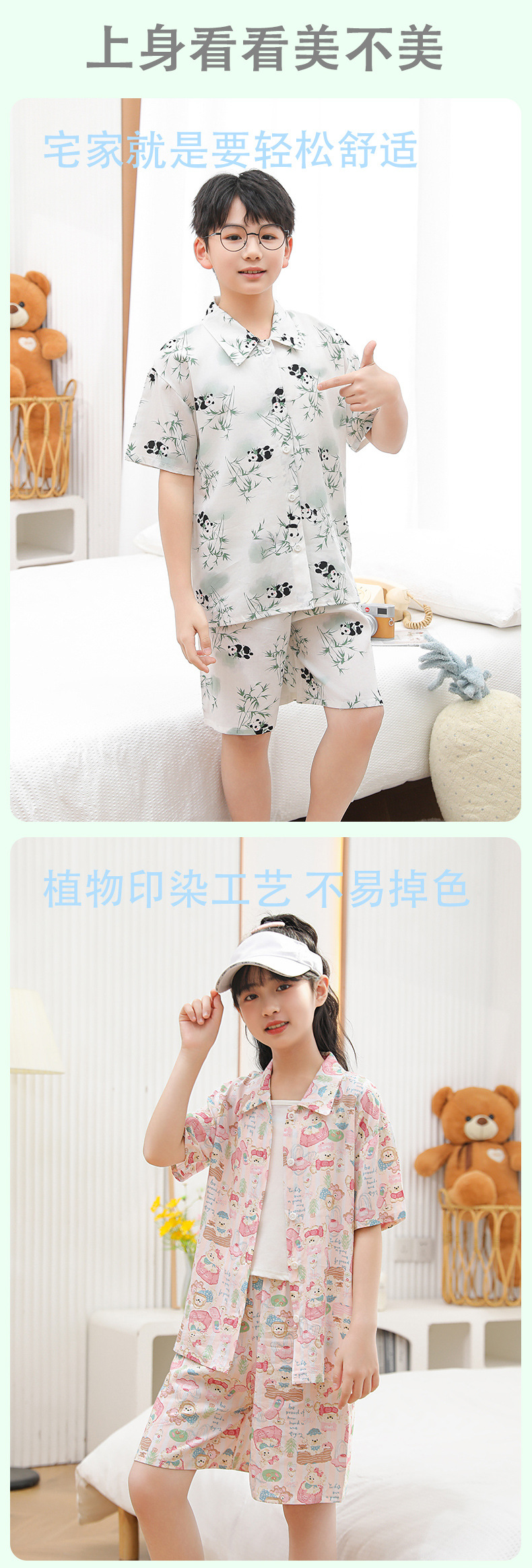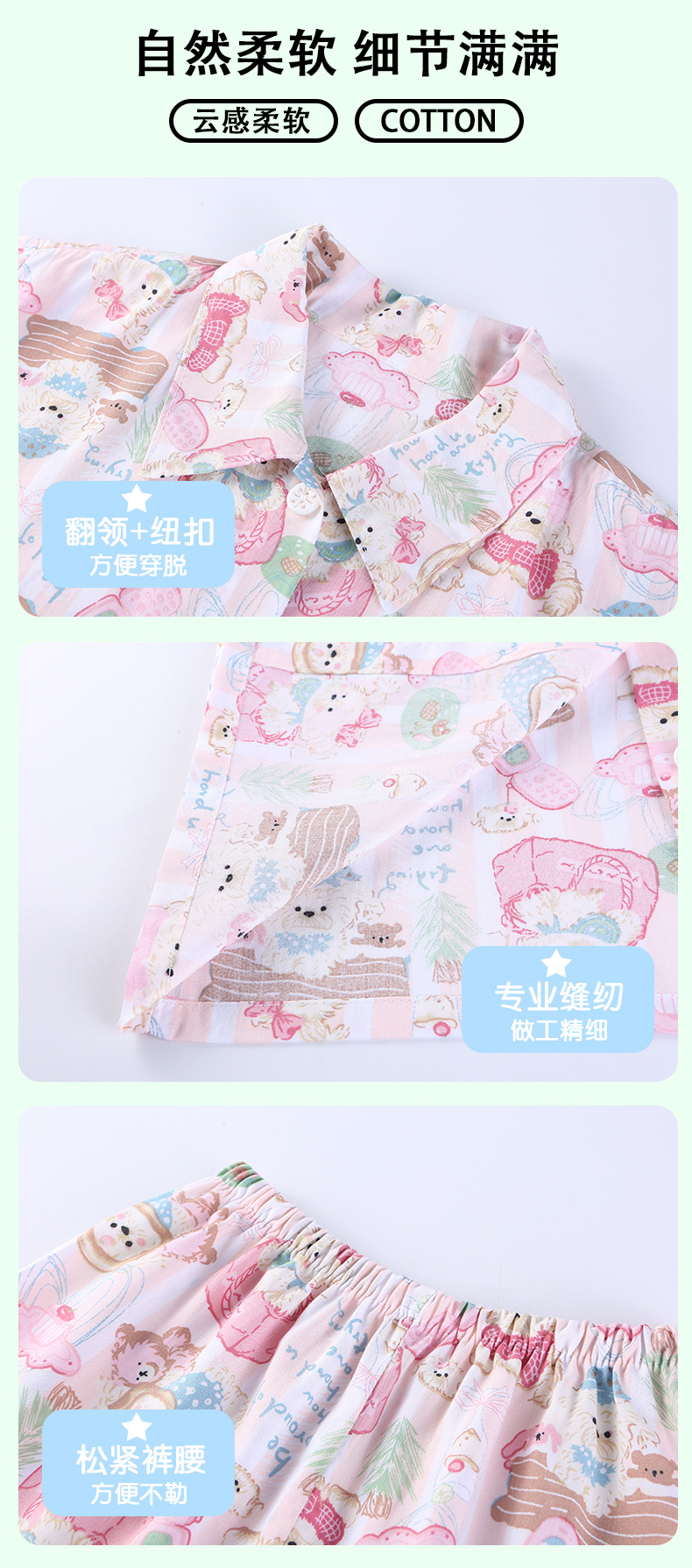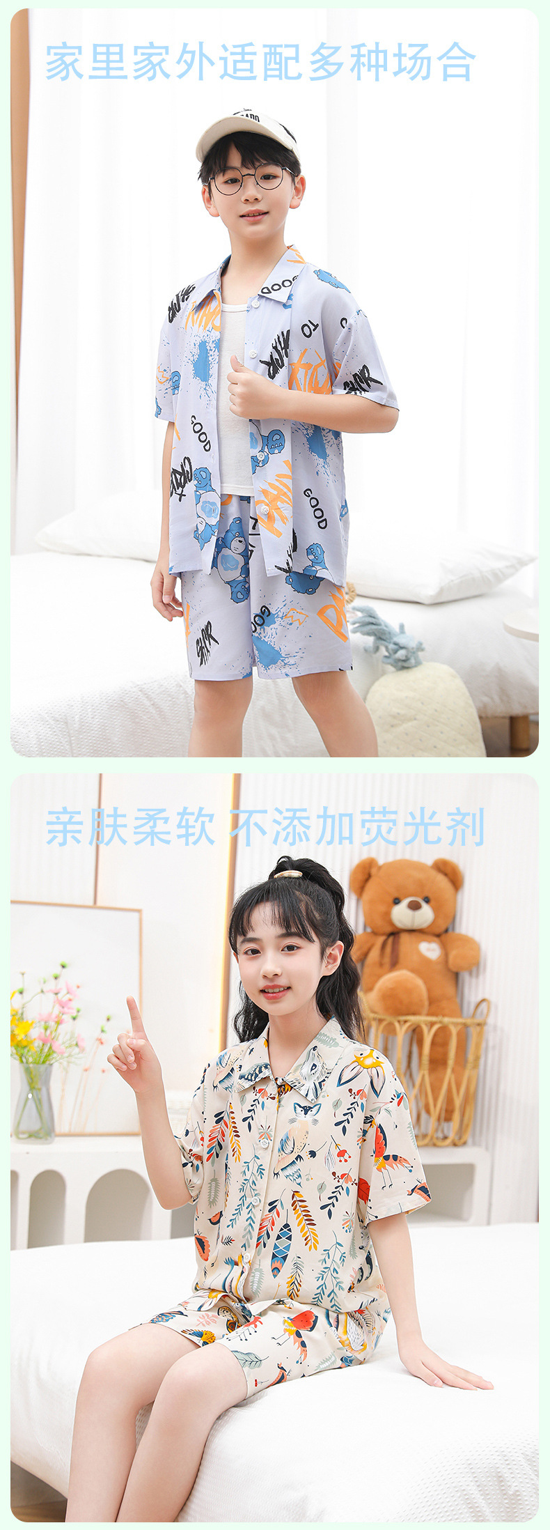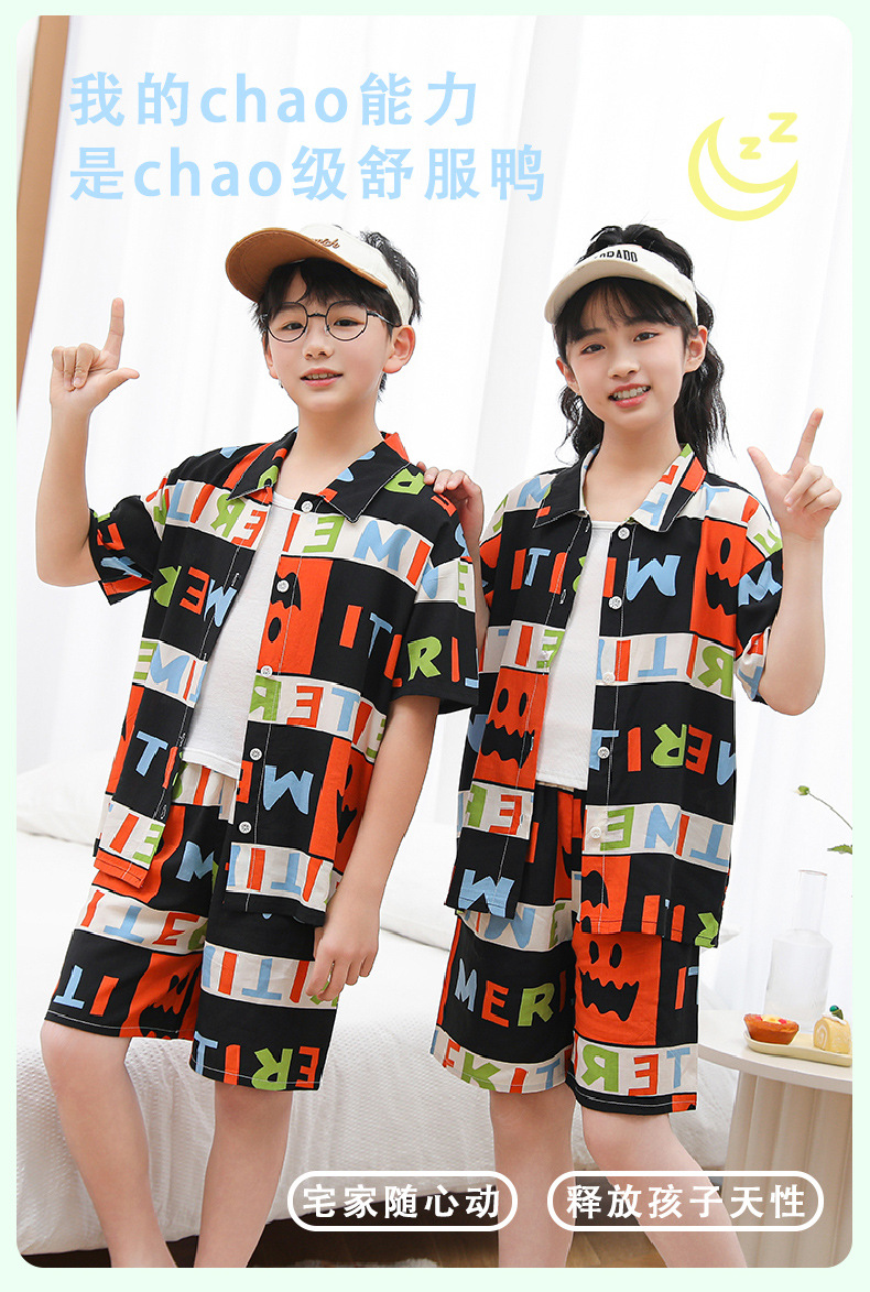 여름 잠옷, 남아 및 아동 가정복, 에어컨 옷, 면 실크 여아, 유아 여름 옷, 아동복, 부모-자식 옷, 아동스토어 가기