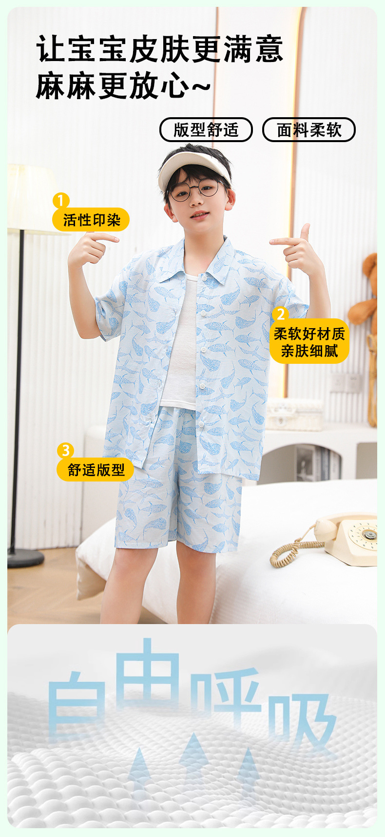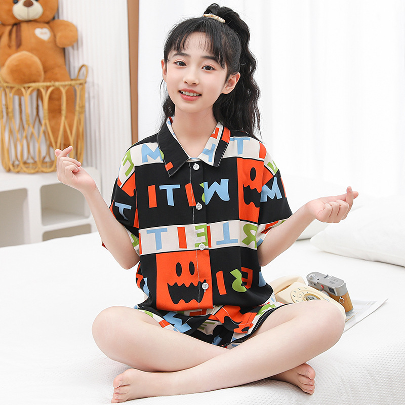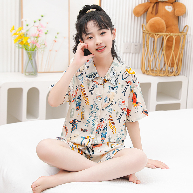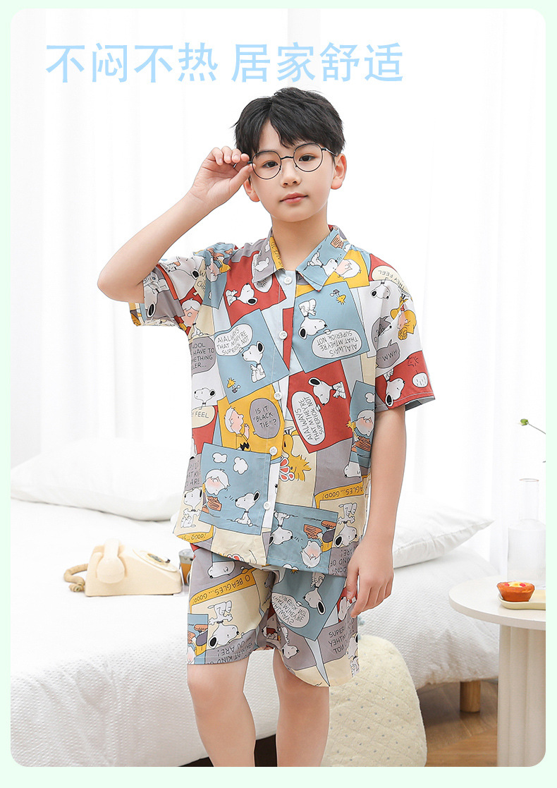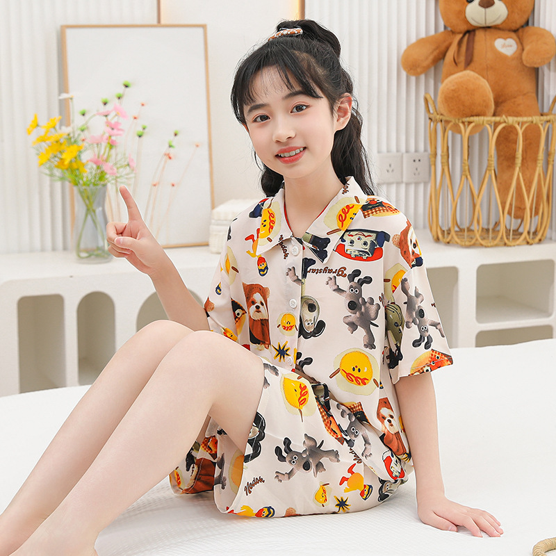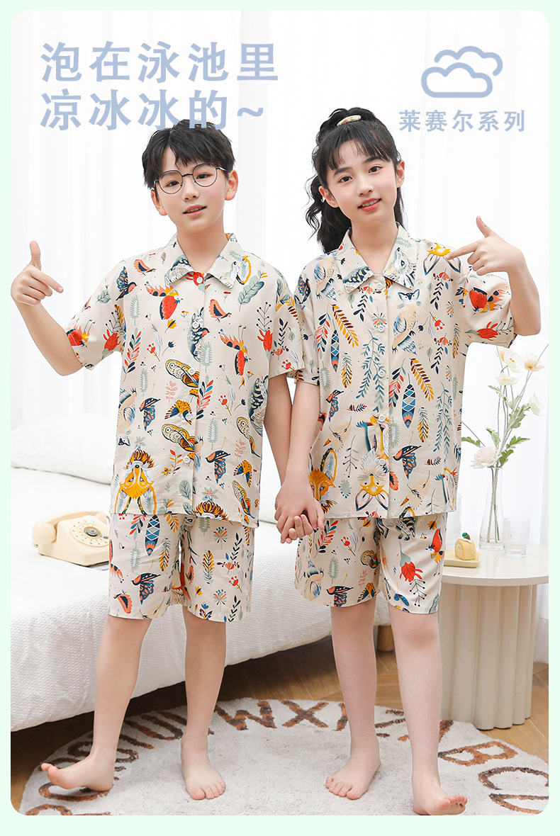 여름 잠옷, 남아 및 아동 가정복, 에어컨 옷, 면 실크 여아, 유아 여름 옷, 아동복, 부모-자식 옷, 아동스토어 가기