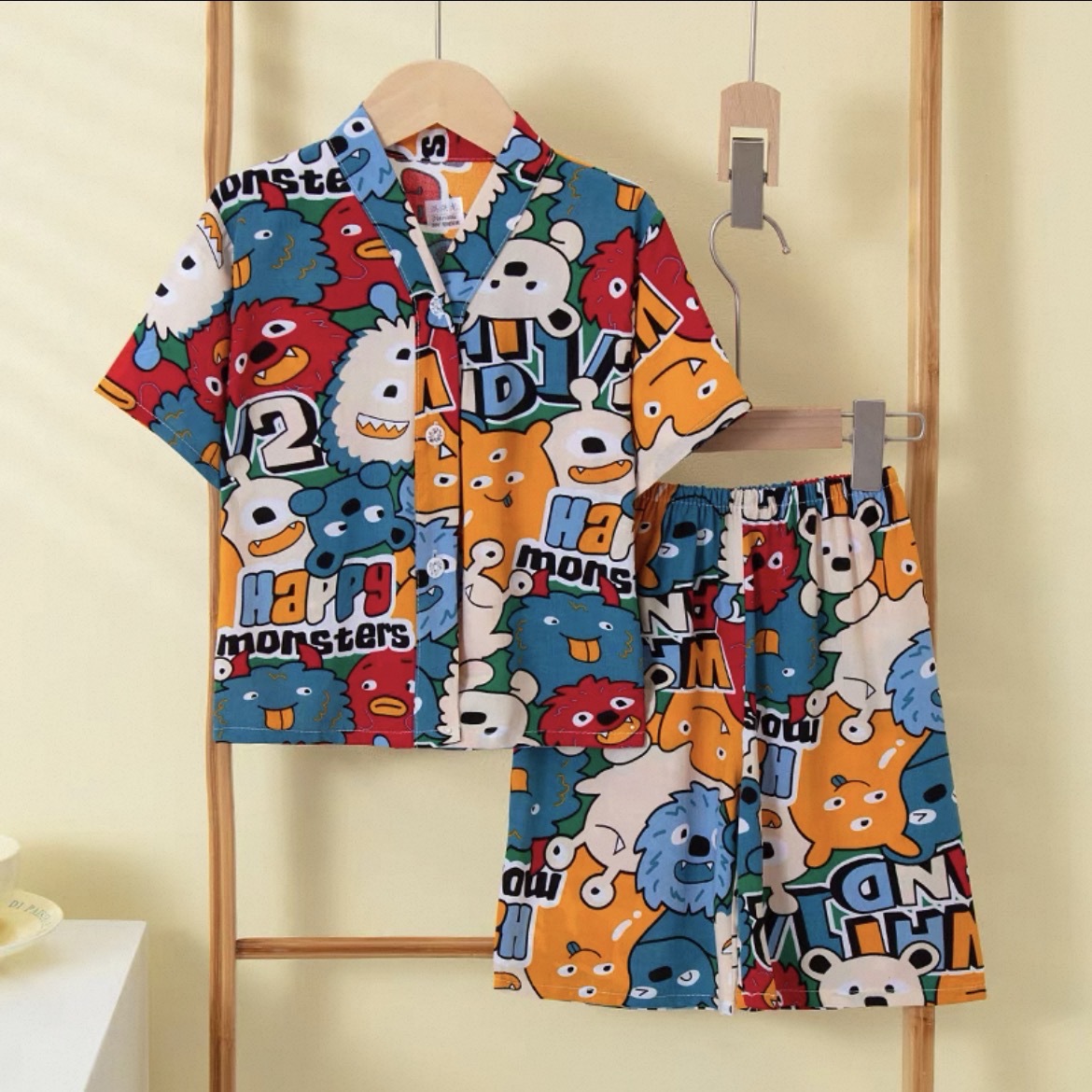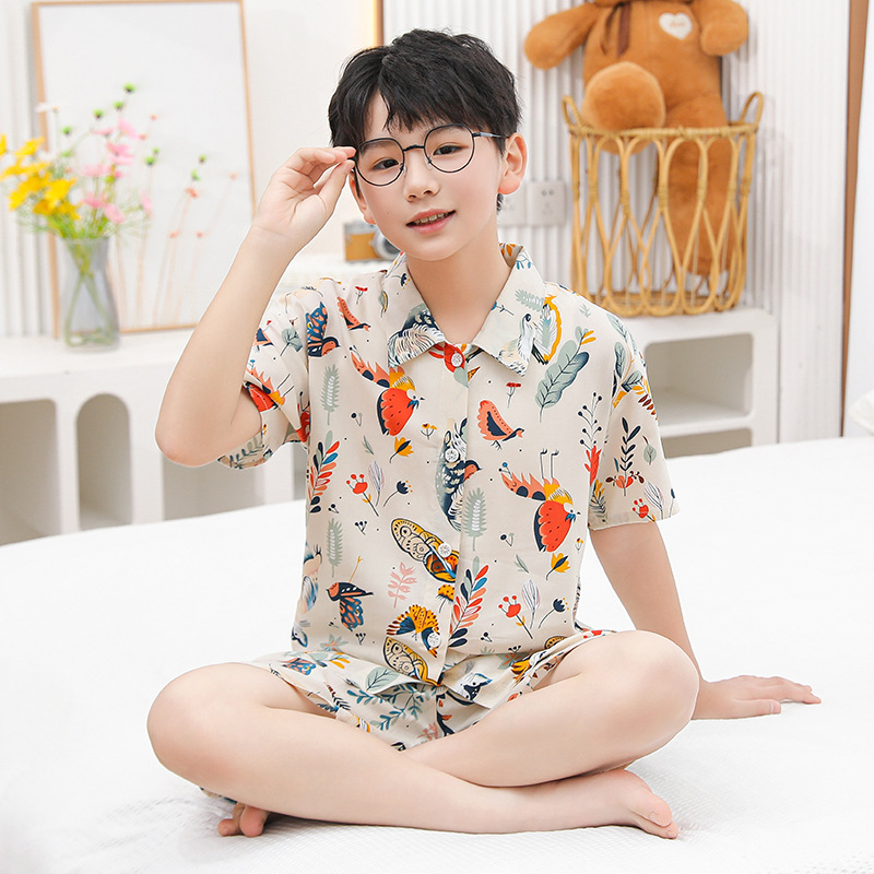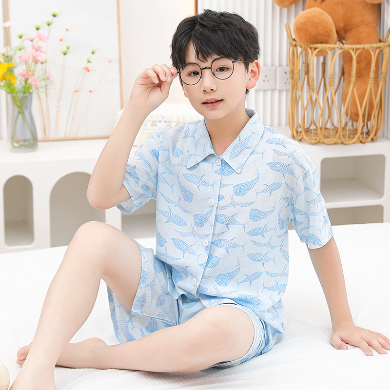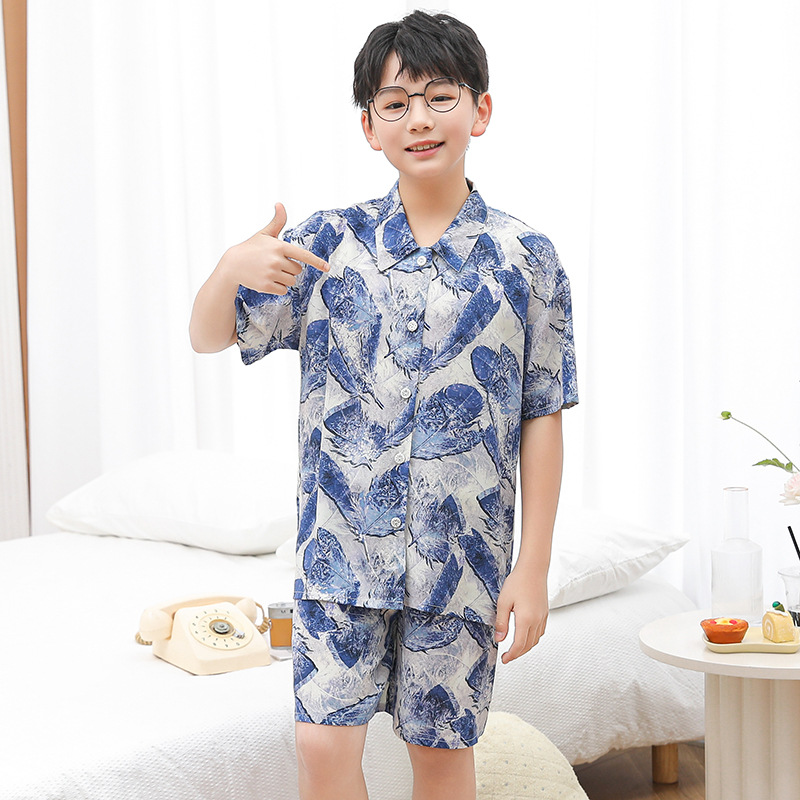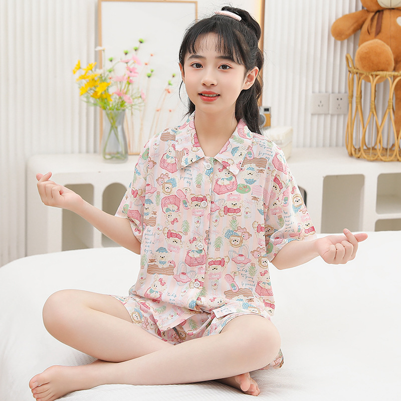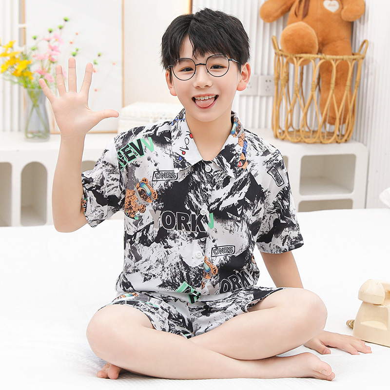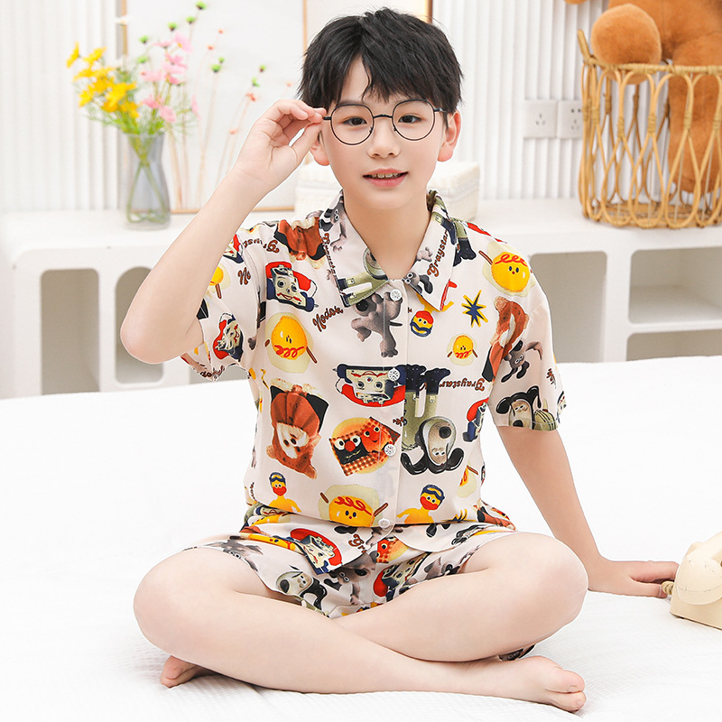 여름 잠옷, 남아 및 아동 가정복, 에어컨 옷, 면 실크 여아, 유아 여름 옷, 아동복, 부모-자식 옷, 아동스토어 가기