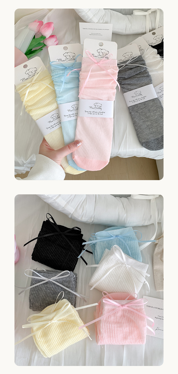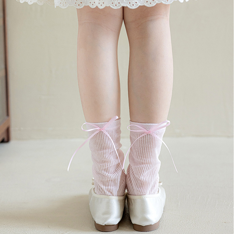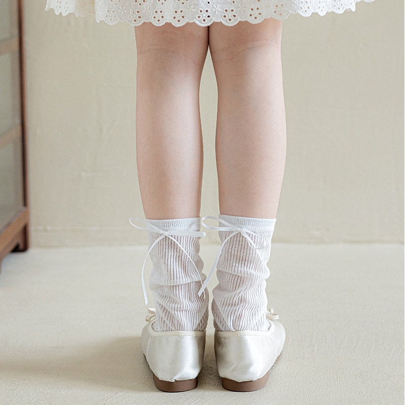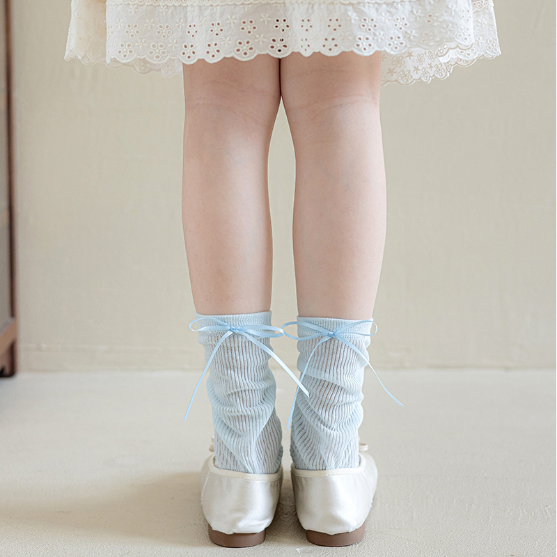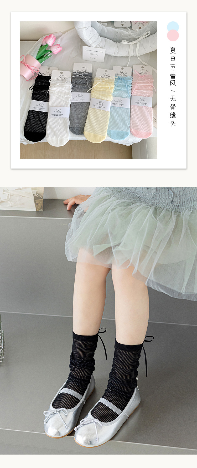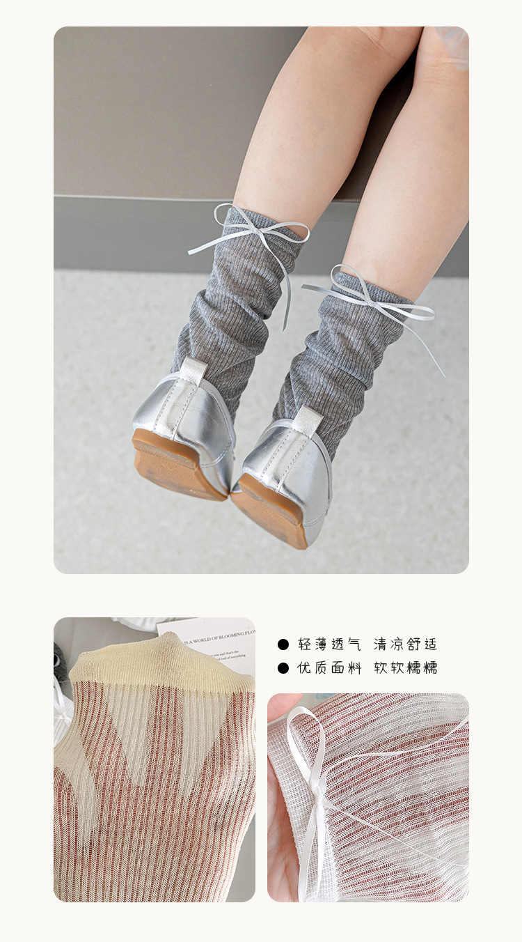 Misscucudog 어린이 양말 봄과 여름 얇은 활 로리타 더미 초박형 중간 튜브 공주면 양말