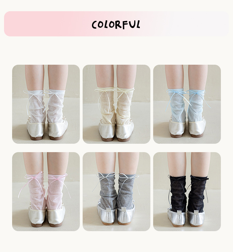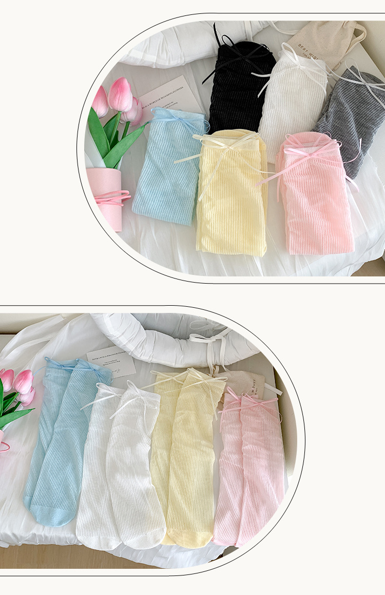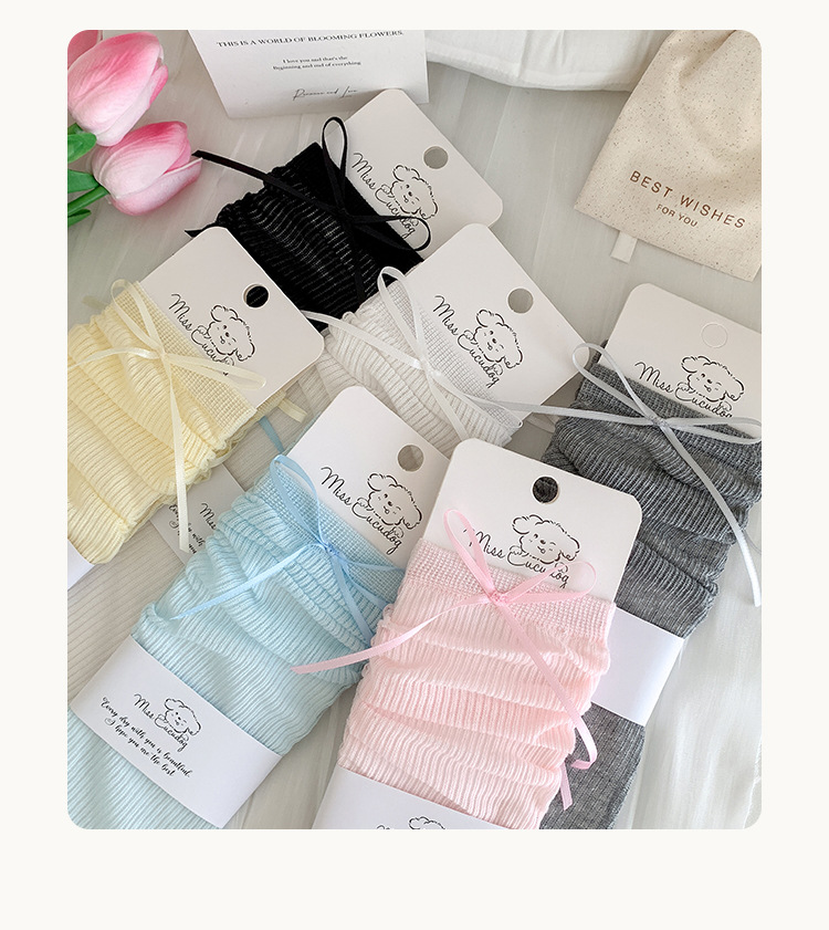 Misscucudog 어린이 양말 봄과 여름 얇은 활 로리타 더미 초박형 중간 튜브 공주면 양말스토어 가기