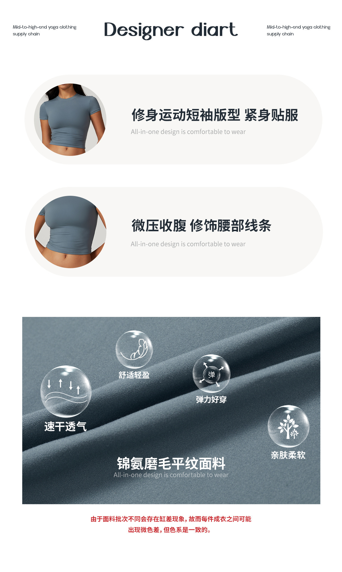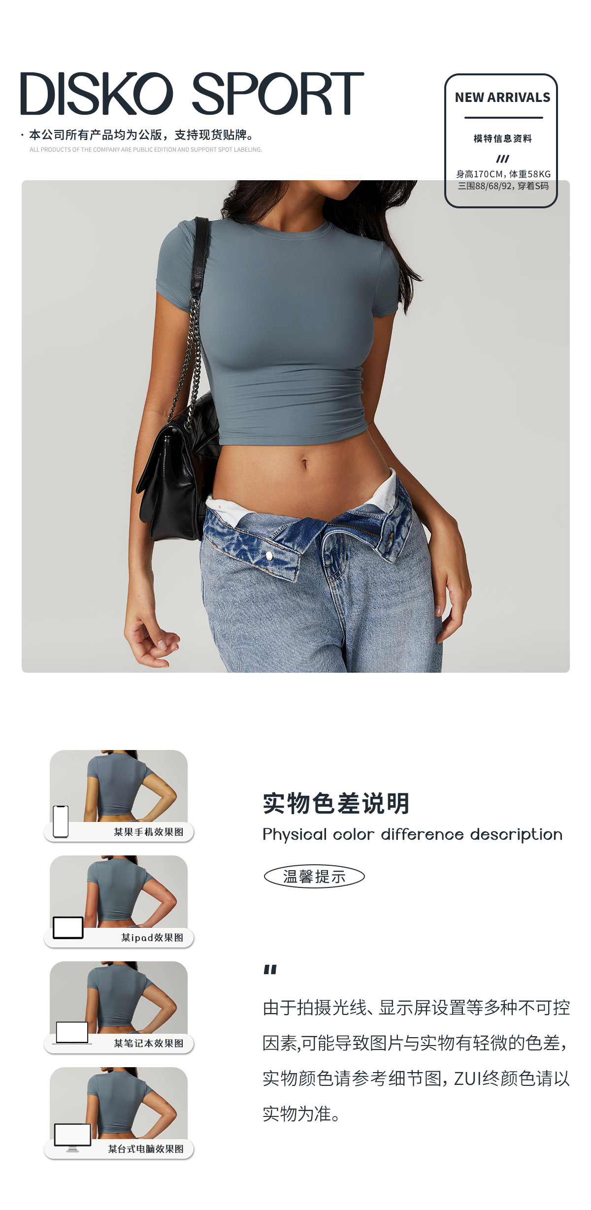 Zechuang 캐주얼 다목적 타이트 속건성 피트니스 탑 요가웨어 러닝 필라테스 스포츠 티셔츠 반팔 8743