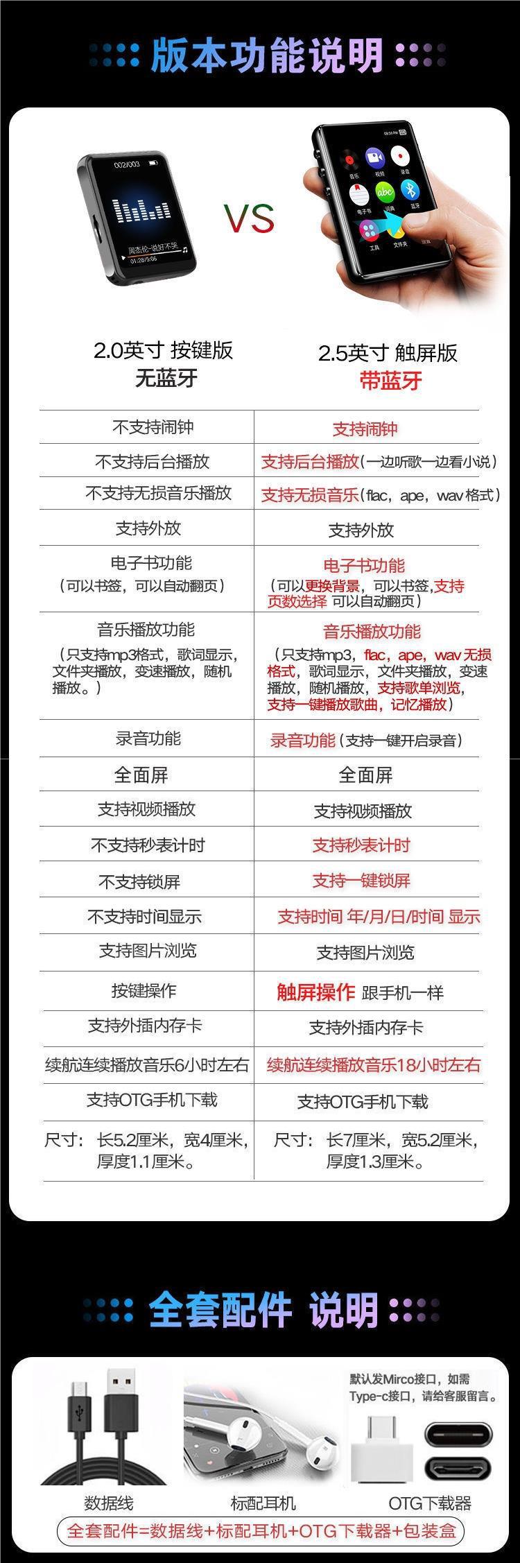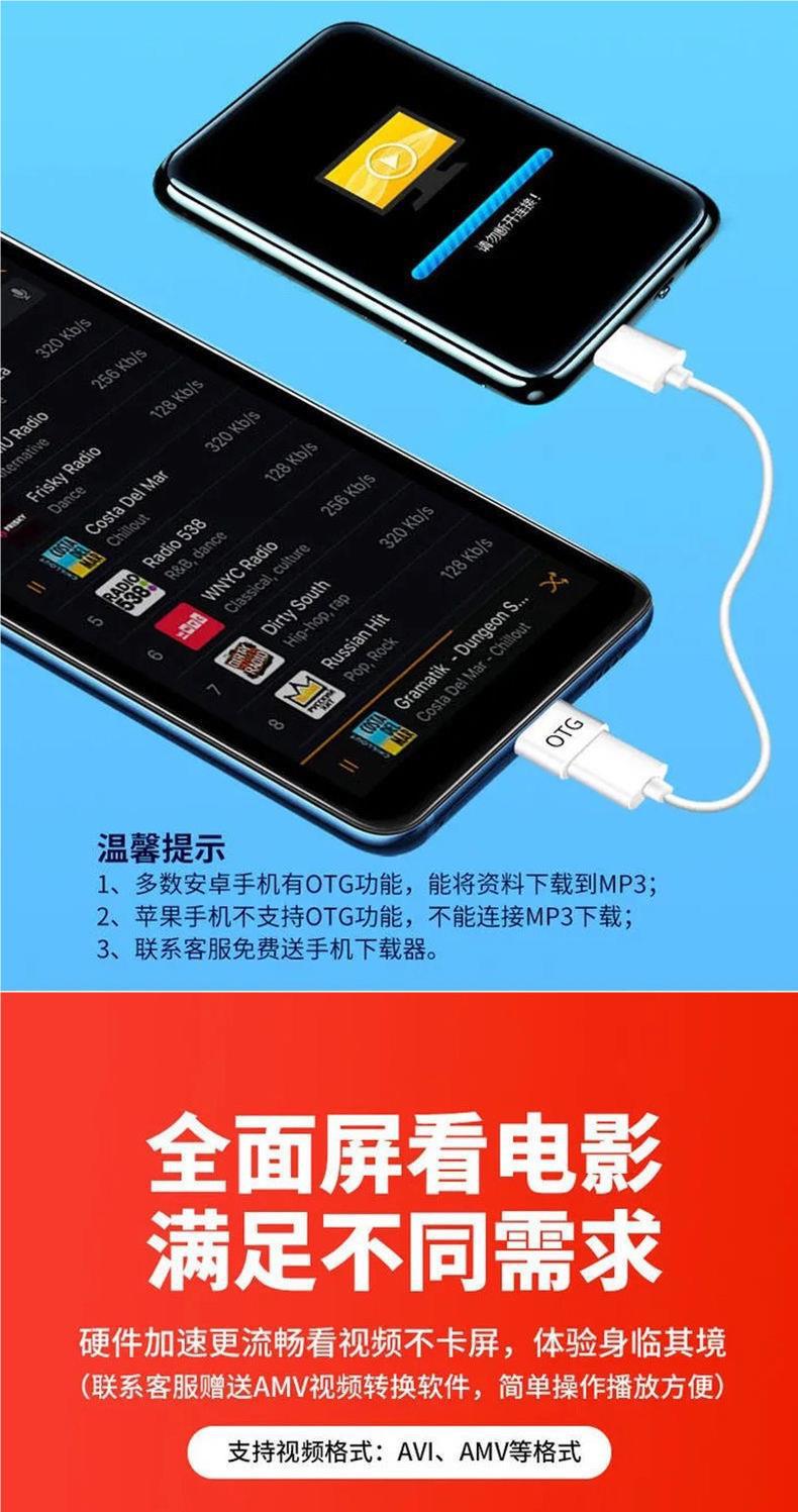 터치 스크린 mp3 Walkman 학생 에디션 mp4 블루투스 영어-중국어 사전 E-Book p5 시계 소설 음악 방송 엄격한 선택