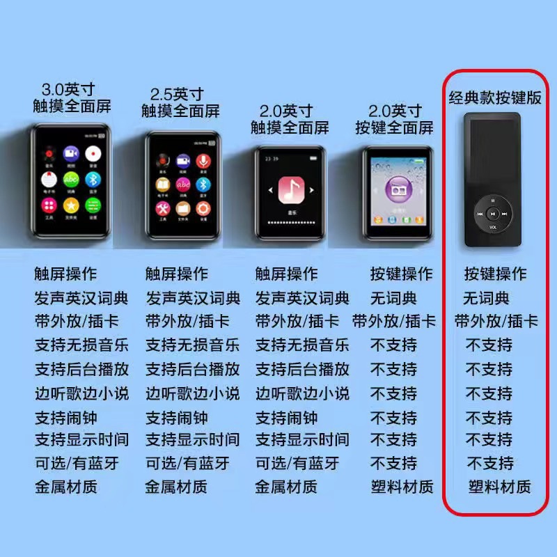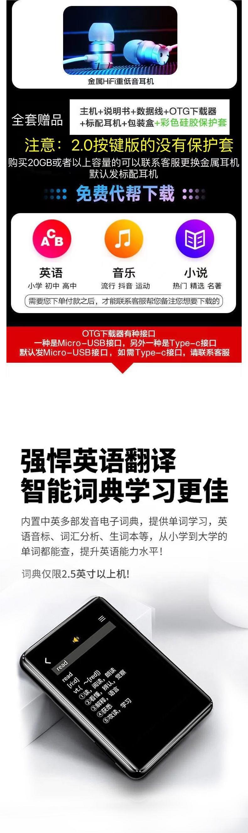터치 스크린 mp3 Walkman 학생 에디션 mp4 블루투스 영어-중국어 사전 E-Book p5 시계 소설 음악 방송 엄격한 선택스토어 가기