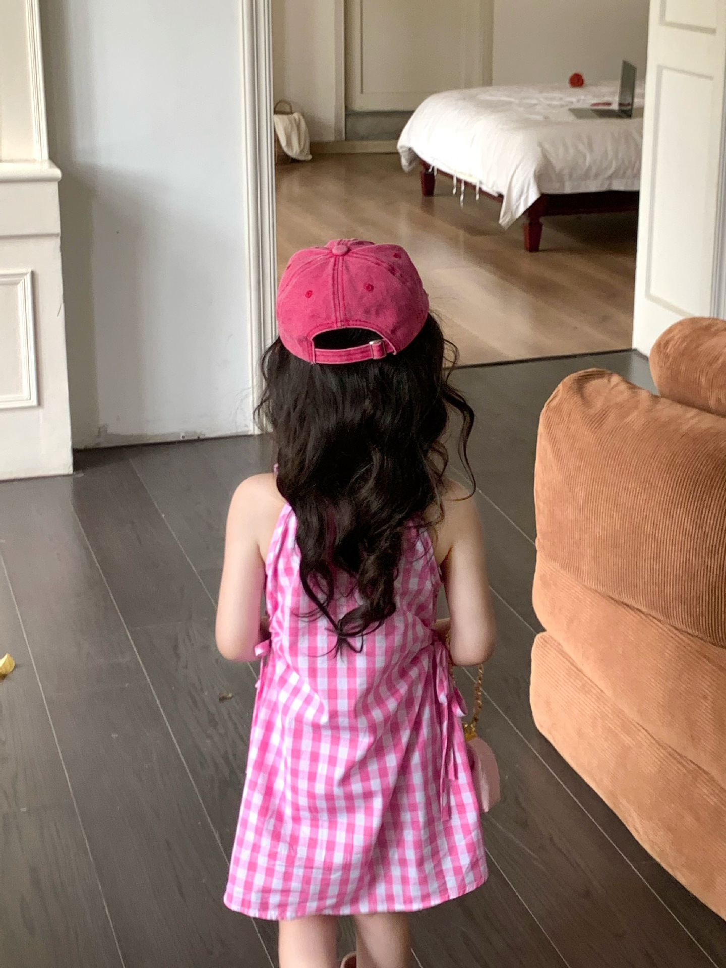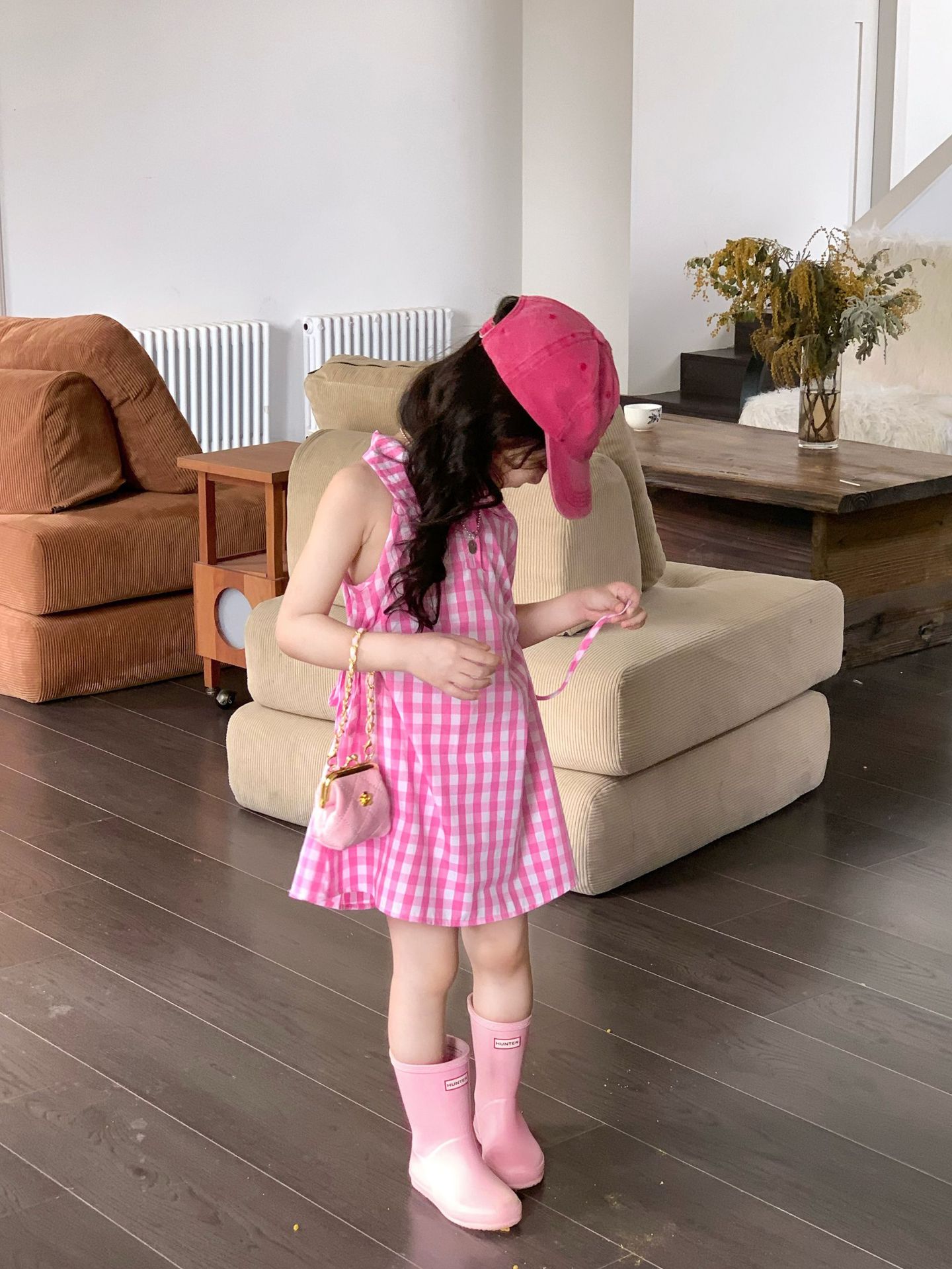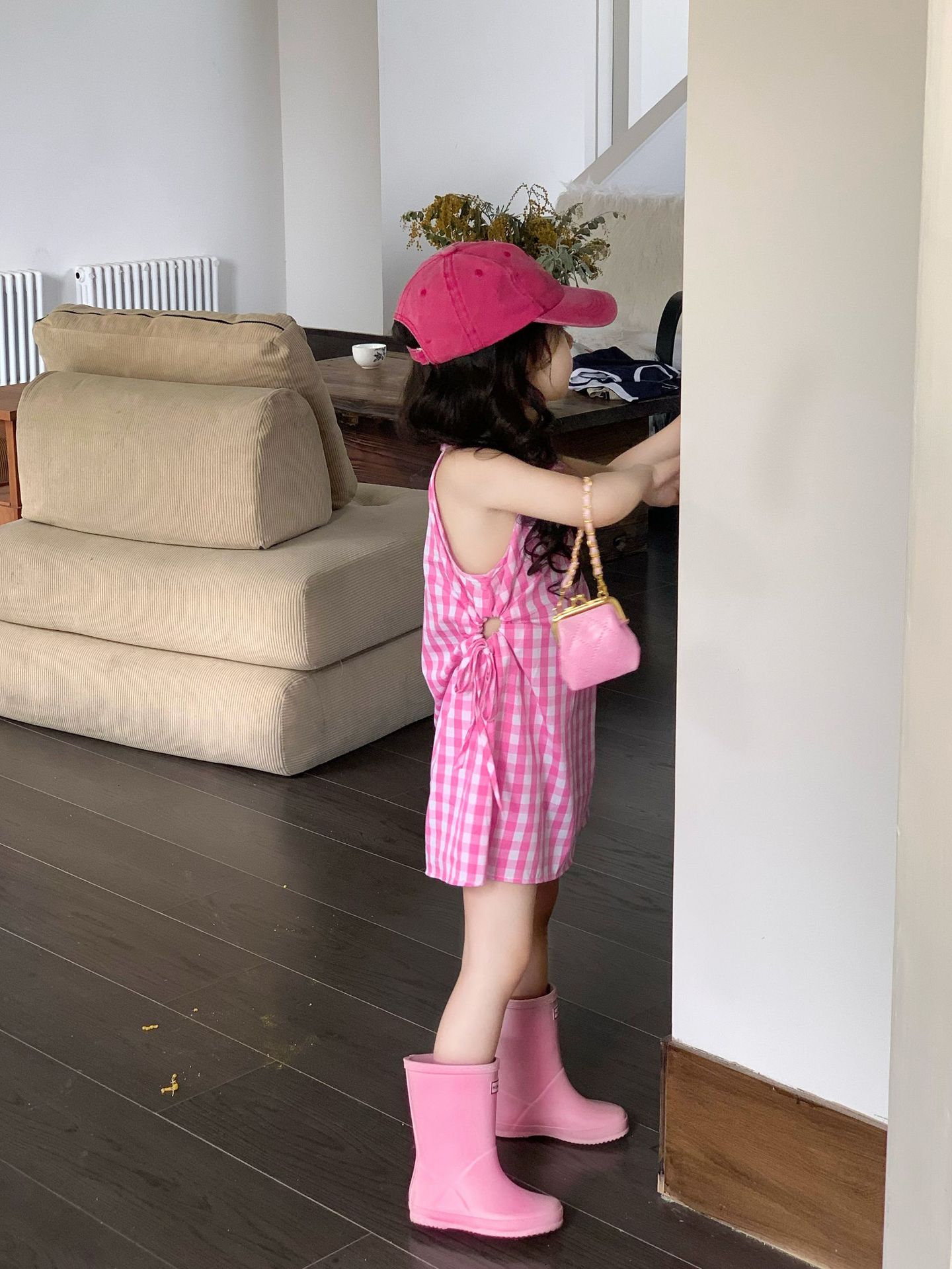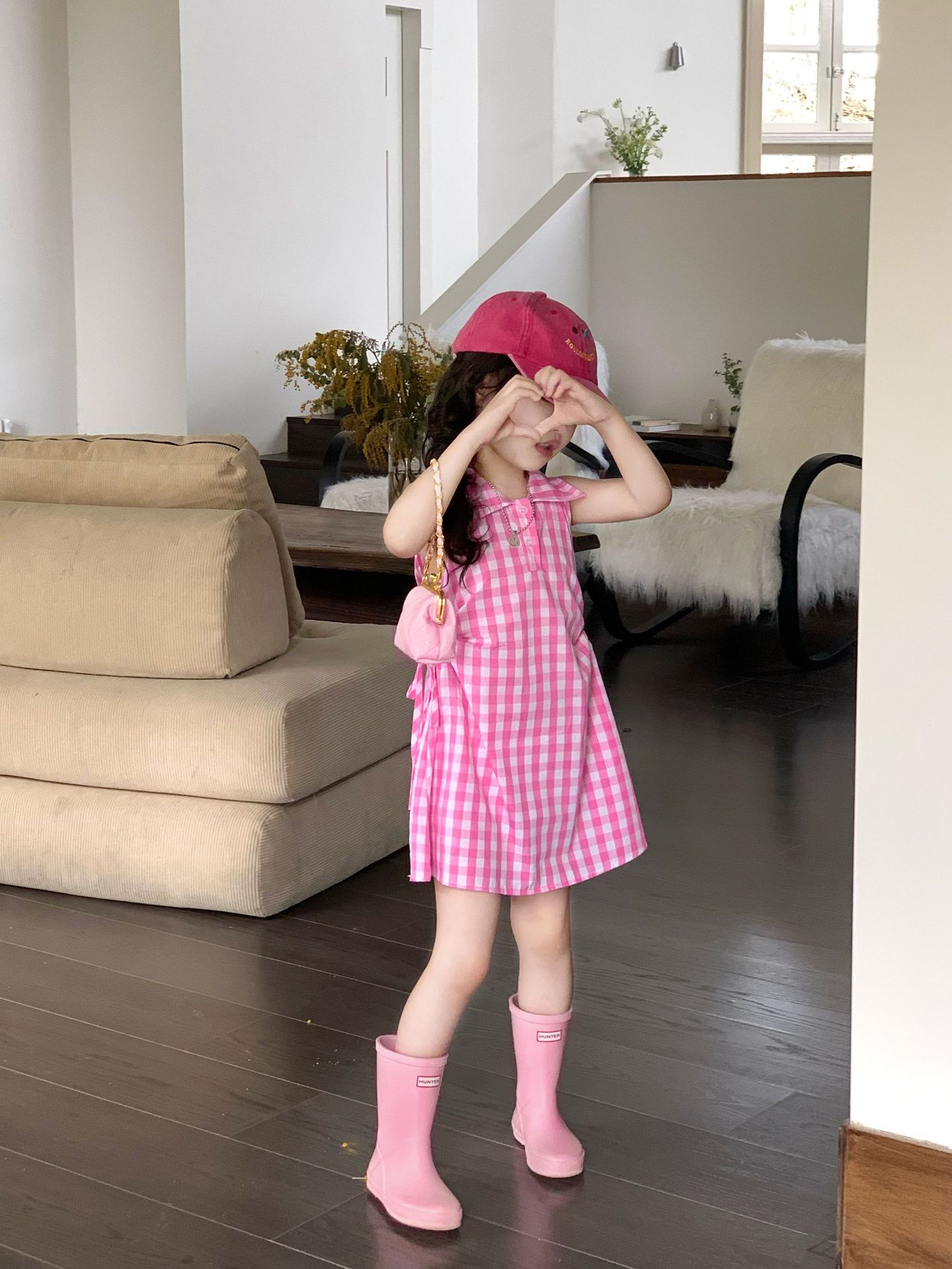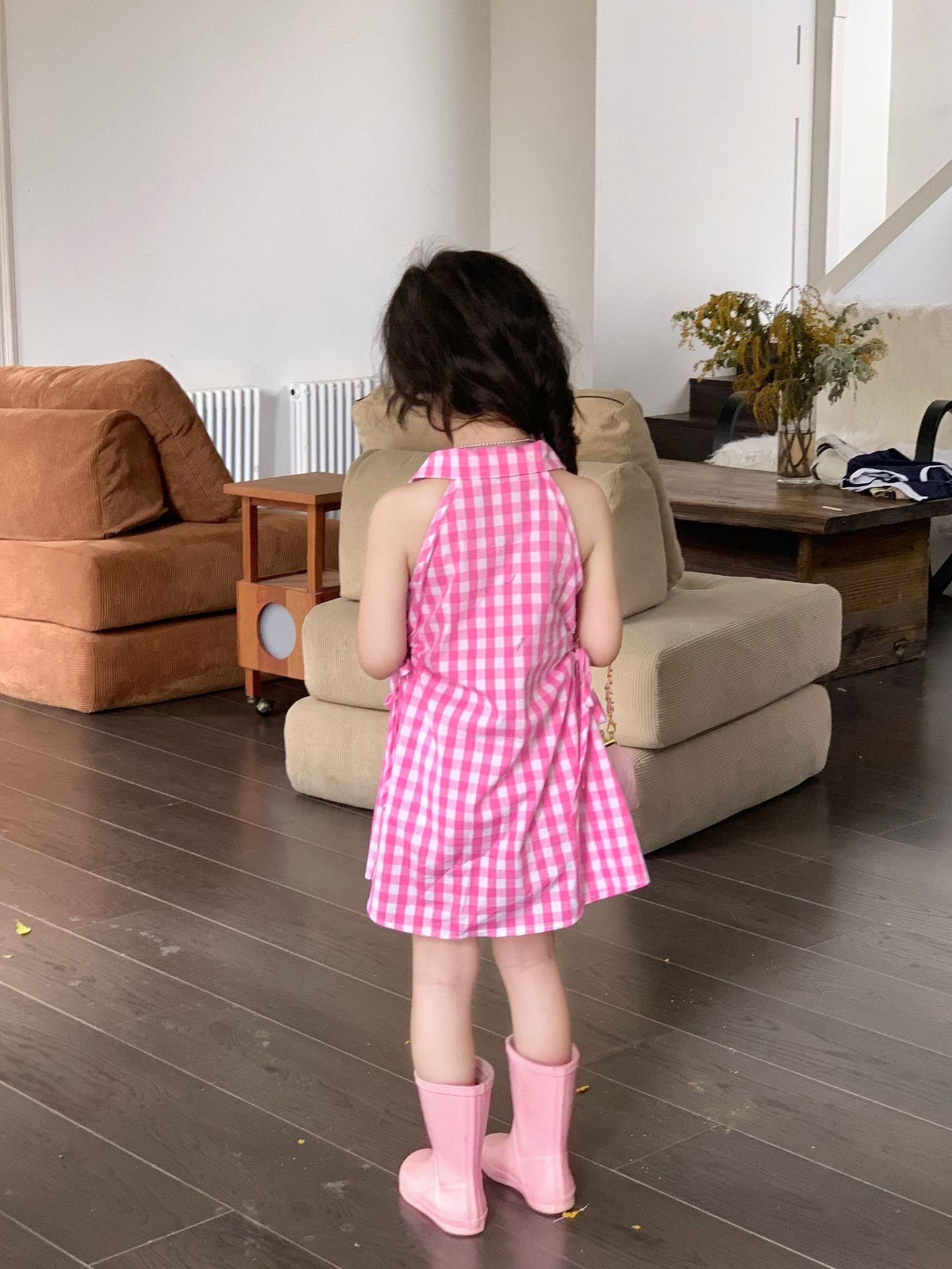 여아 원피스 여름 한국 스타일 세련된 디자인 여자 아기 핑크색 칼라 체크무늬스토어 가기