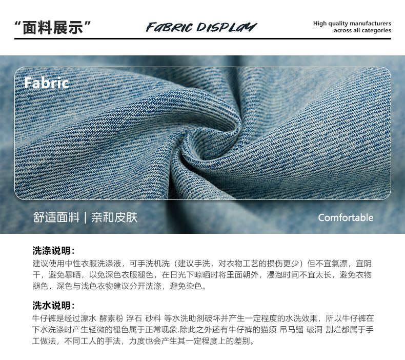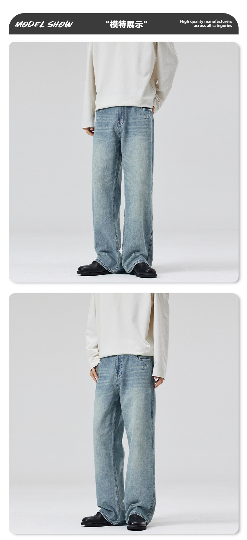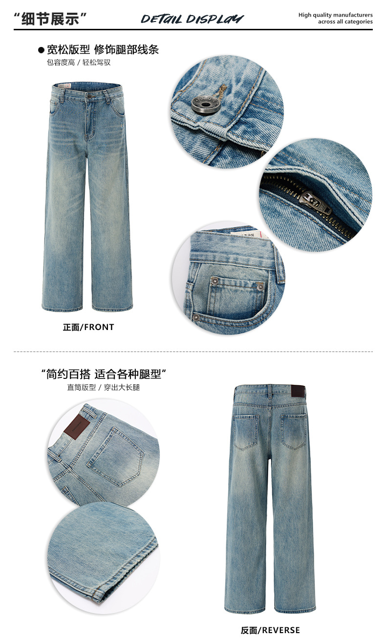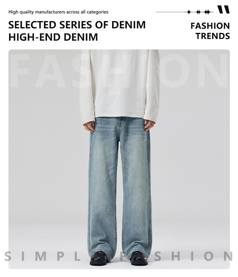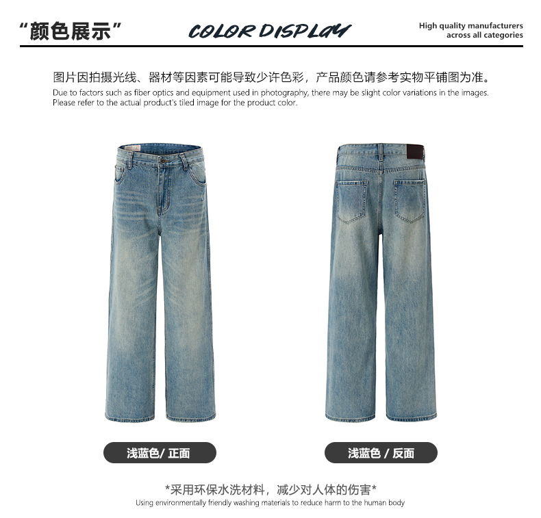 LKTM 남자 # 봄과 여름 라이트 블루 씻은 고양이 수염 청바지 남녀 트렌디 올매치 루즈 스트레이트 바지스토어 가기