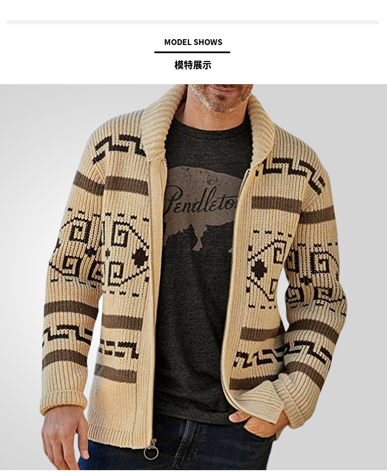 가을, 겨울 새로운 남성 패션 옷깃 캐주얼 카디건 코트 긴 소매 슬림 자카드 니트 스웨터 SY0013
