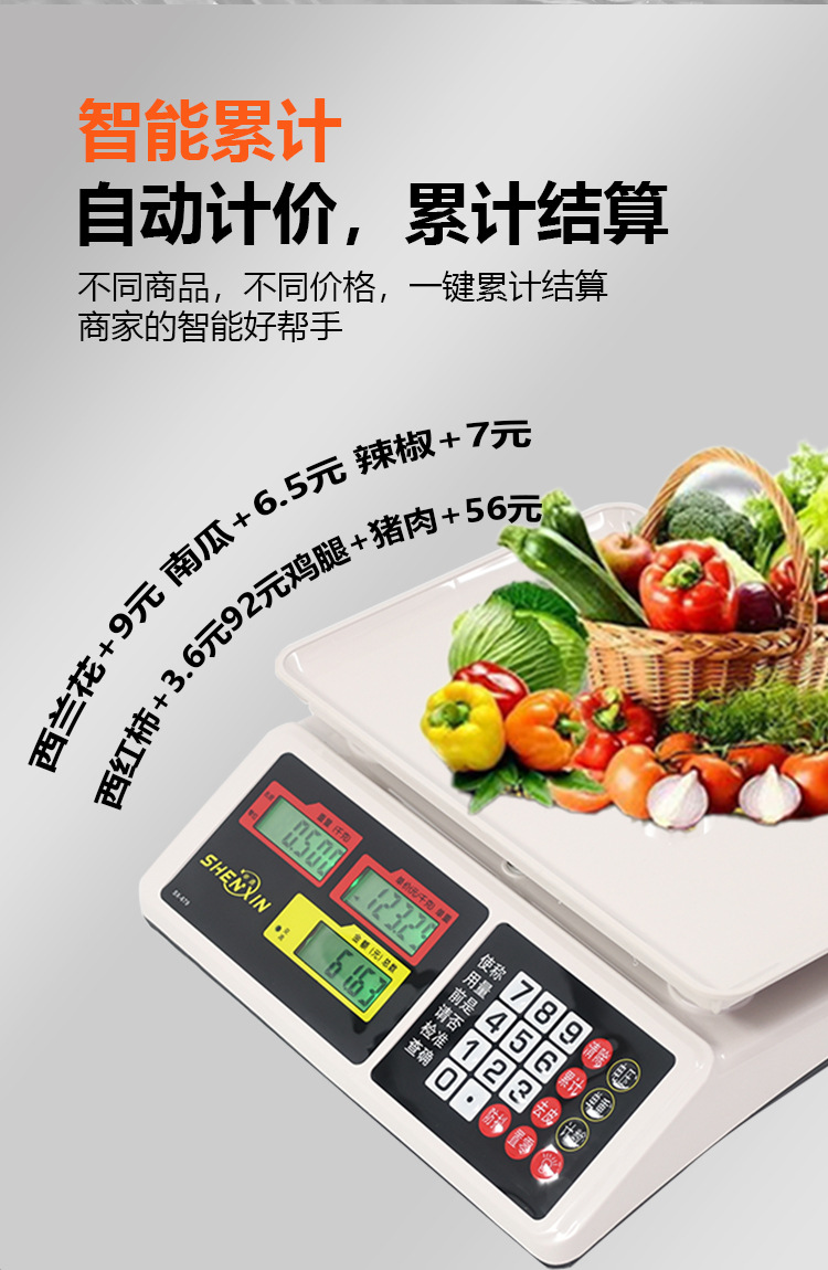 신신 30kg 상업용 전자저울, 야채 판매 및 노점용 저울, 고정밀, 해외 도매, 양면 디스플레이 전자저울