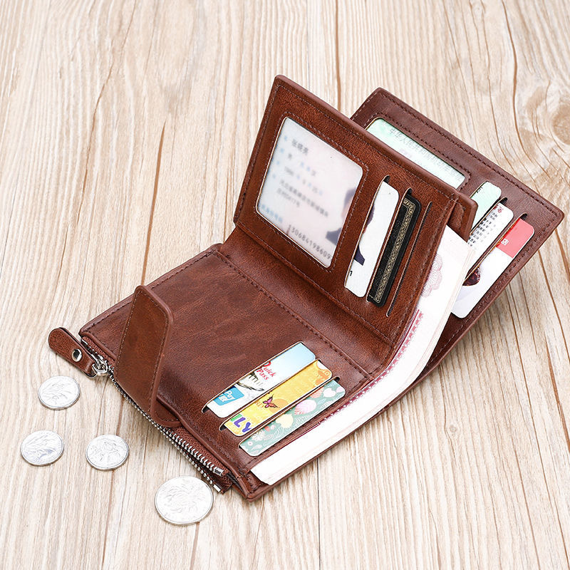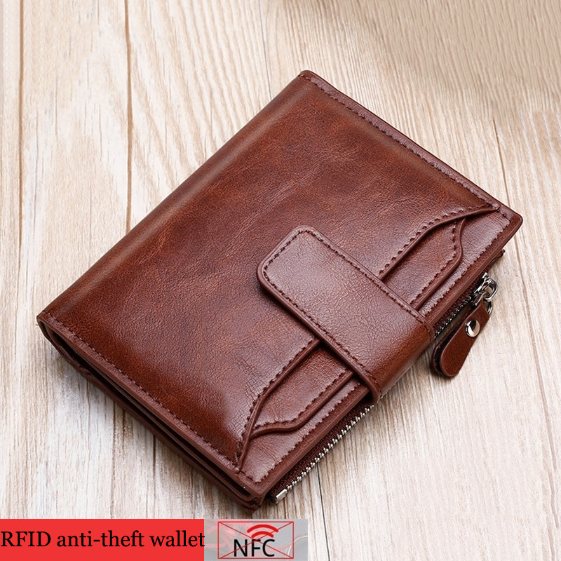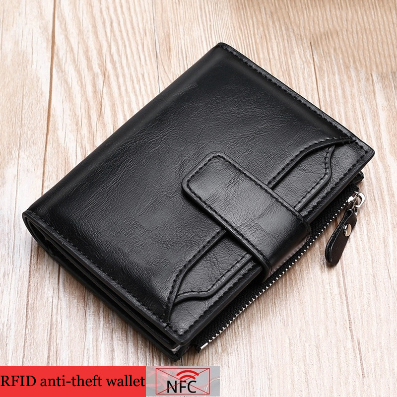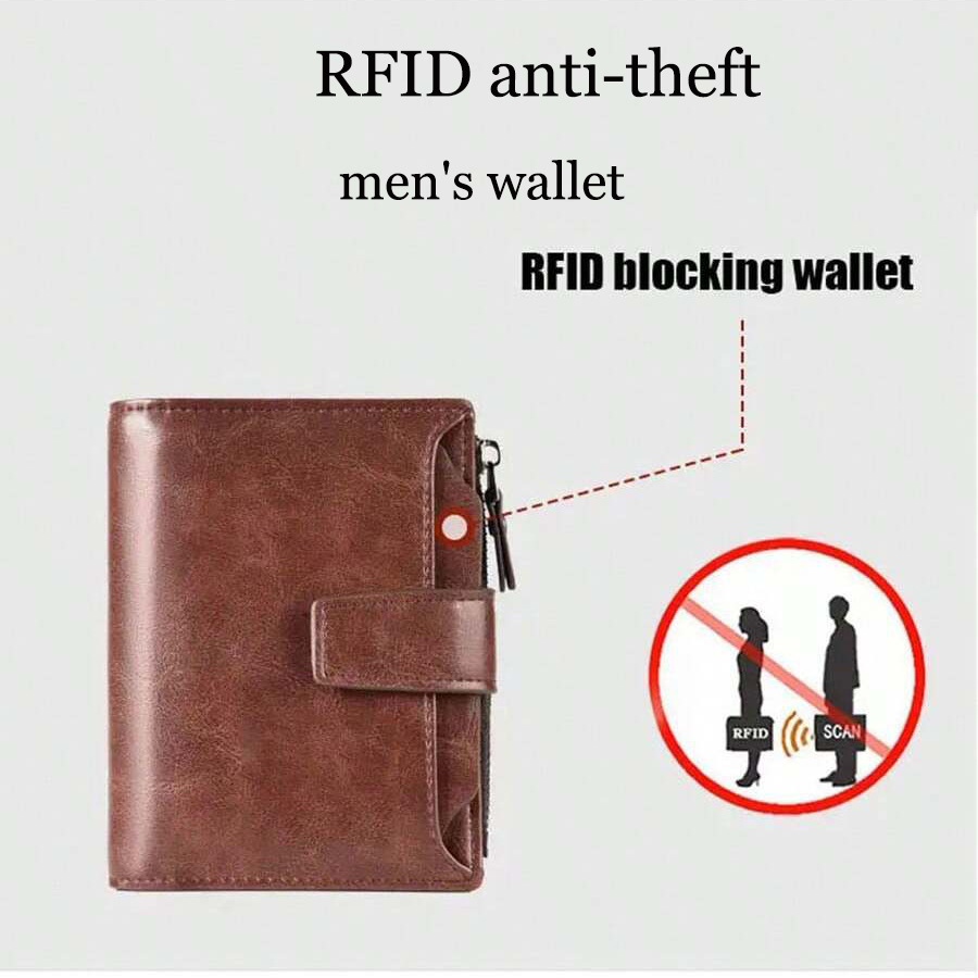 새로운 RFID 도난 방지 브러시 남성용 지갑 PU 가죽 짧은 남성용 지갑 지퍼 머니 클립 신용 카드 운전 면허증 가방스토어 가기