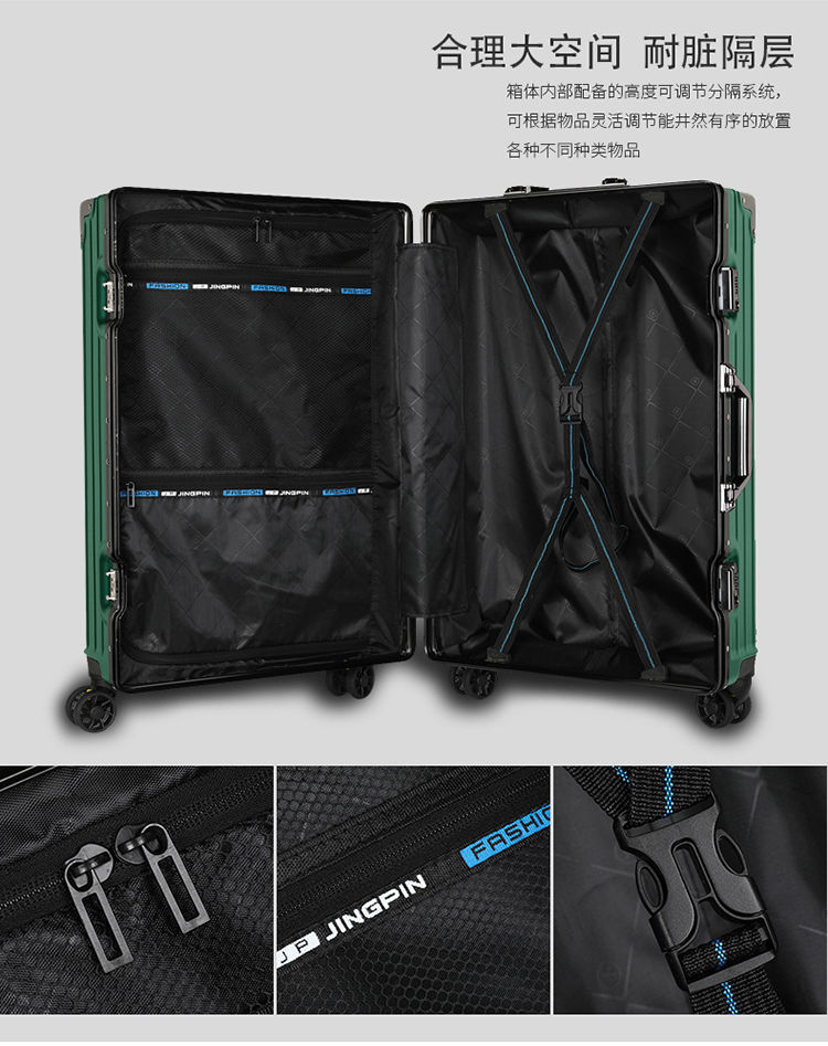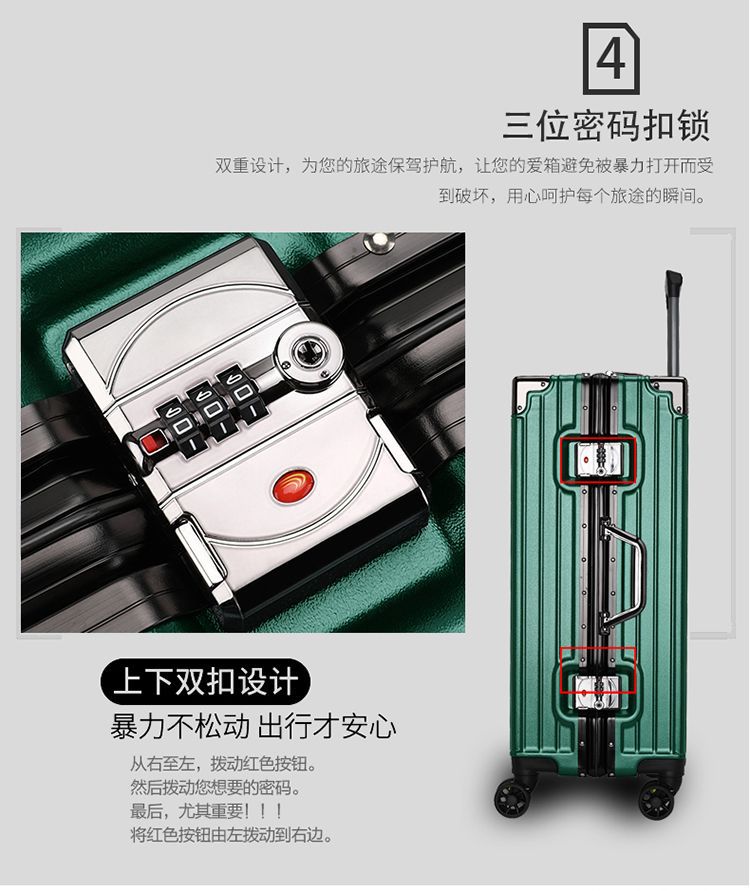 대용량 알루미늄 프레임 트롤리 케이스, 전체 알루미늄 항공 탑승 케이스, 두꺼운 가죽 케이스, 여행용 케이스, 비밀번호 상자스토어 가기