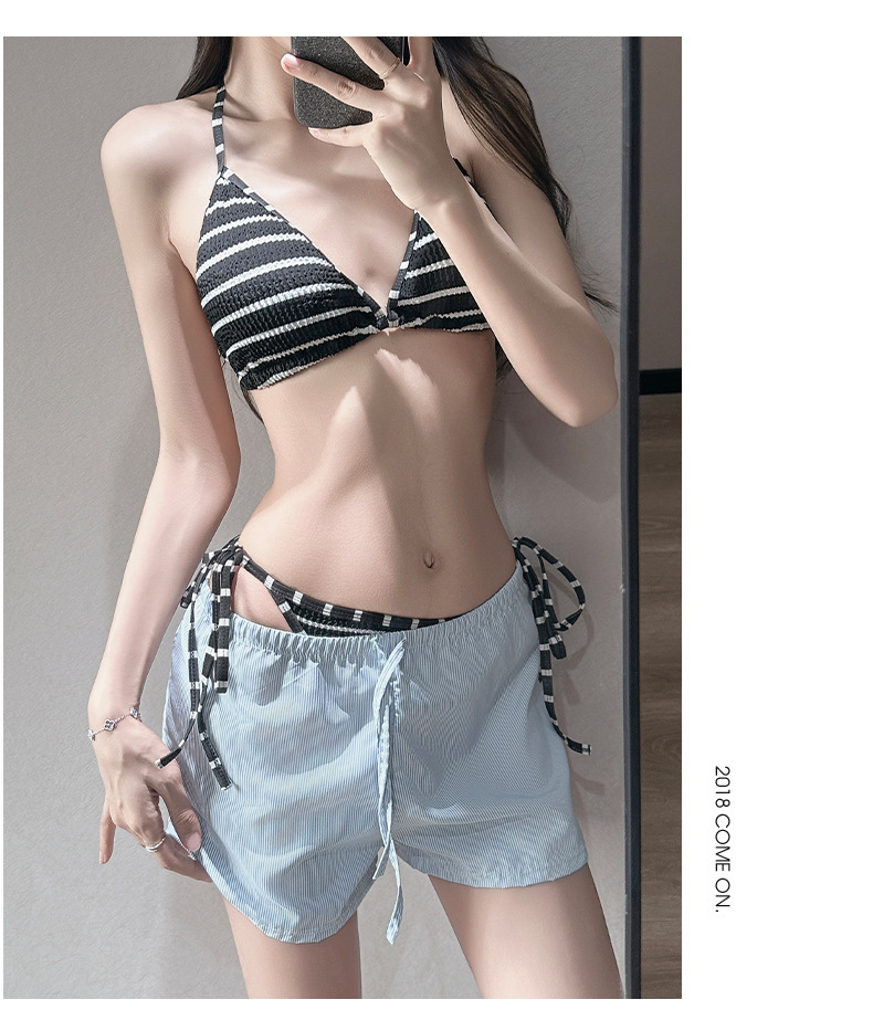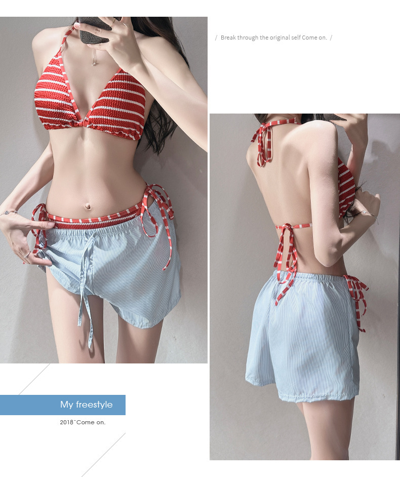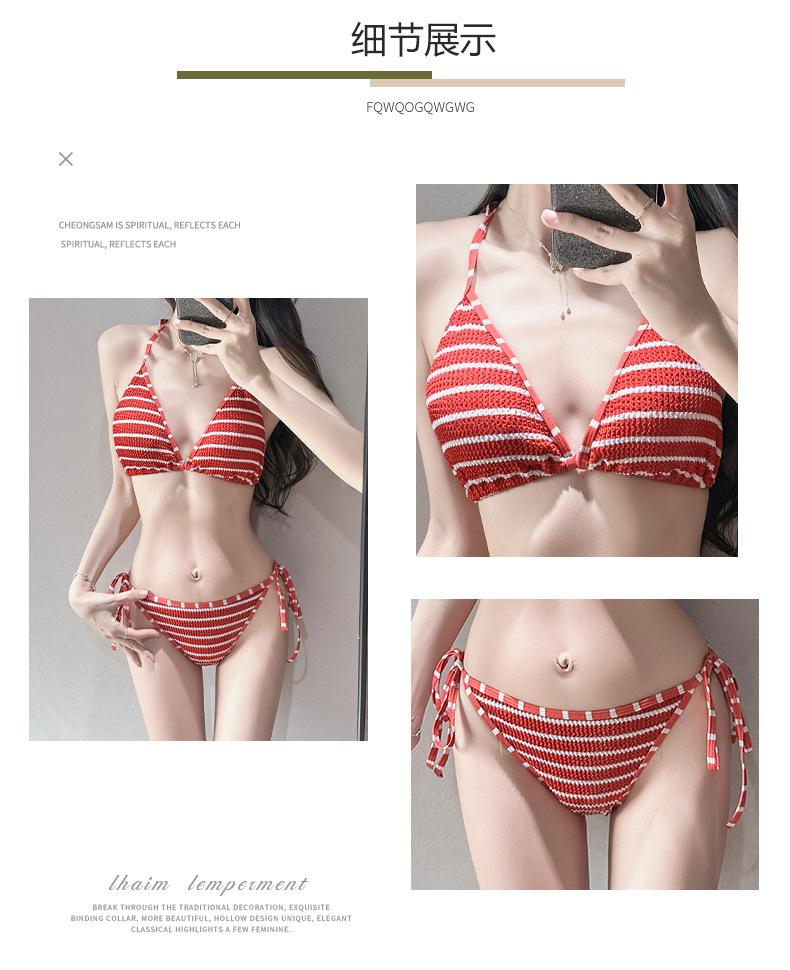 수영복 여성 비키니 섹시한 미국 핫 소녀 수영복 스트라이프 푸시 업 새로운 2025 해변 휴가 온천 수영복스토어 가기