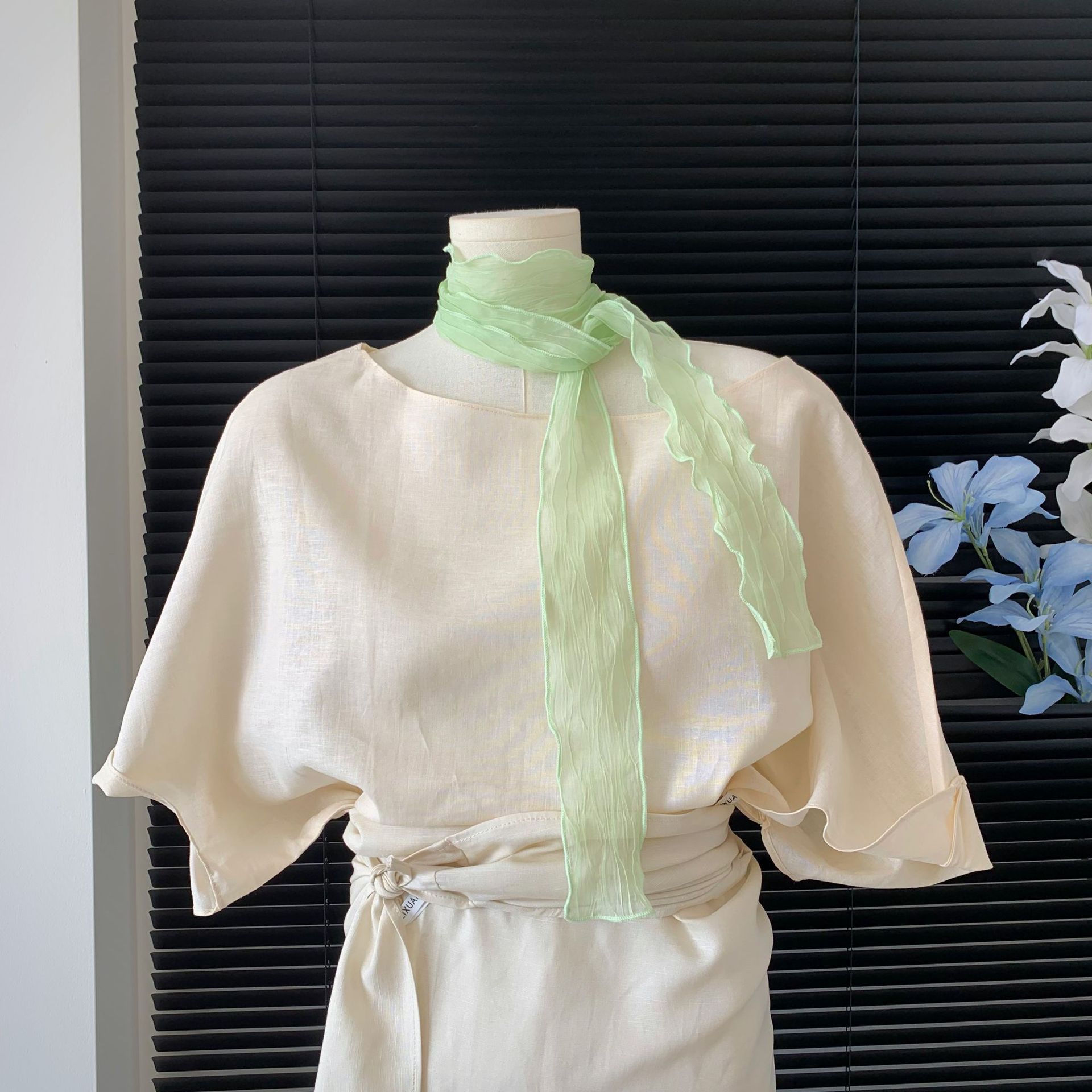 순수한 욕망 ~ 단색 주름 실크 스카프 헤어 밴드 스파이스 소녀 봄과 여름 새로운 올 매치 장식 스카프 2025