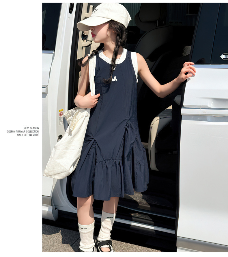 오렌지 타이거 소녀의 치마 여름 2025 새로운 어린이 여름 원피스 슬립 스커트 큰 어린이 원피스 소녀의 공주 치마