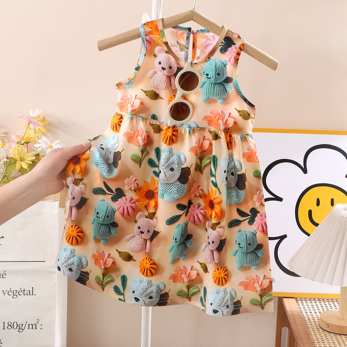 • 베이지색 배경에 꽃 곰