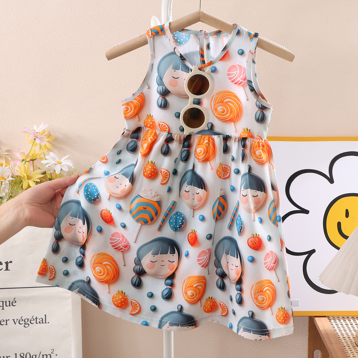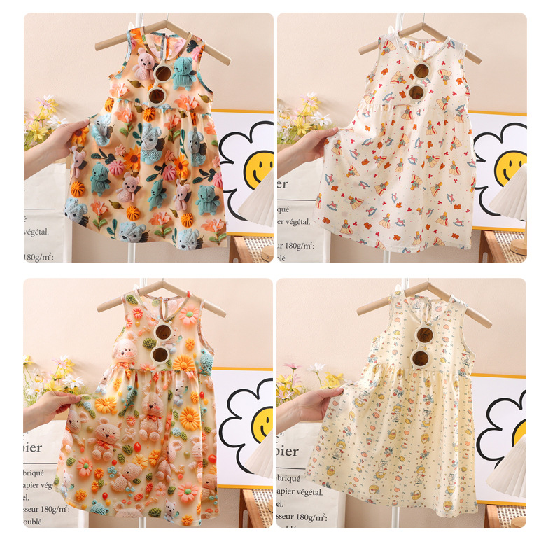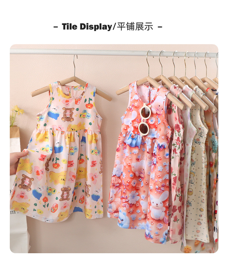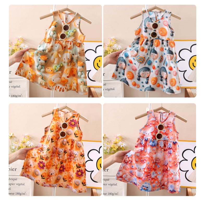 소녀 3D 3 차원 인쇄 스트랩 원피스 여름 얇은 소녀 민소매 조끼 원피스 아기 꽃 긴 원피스스토어 가기