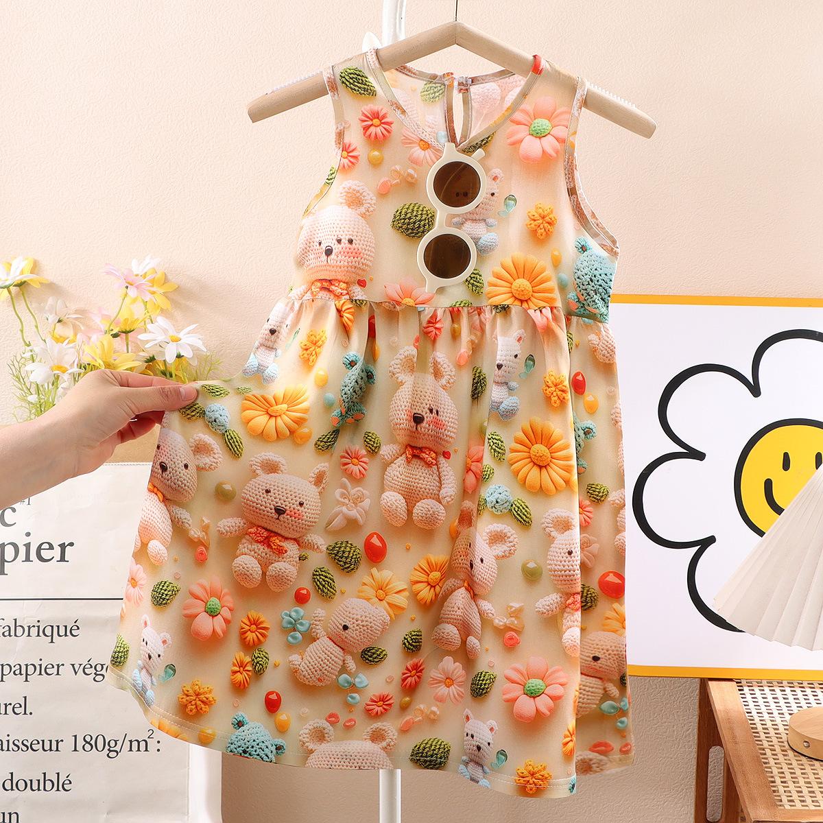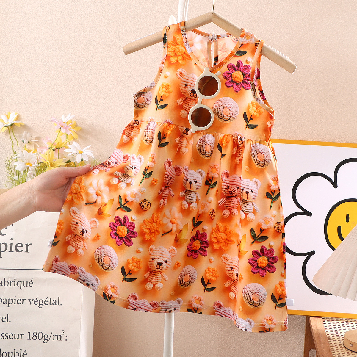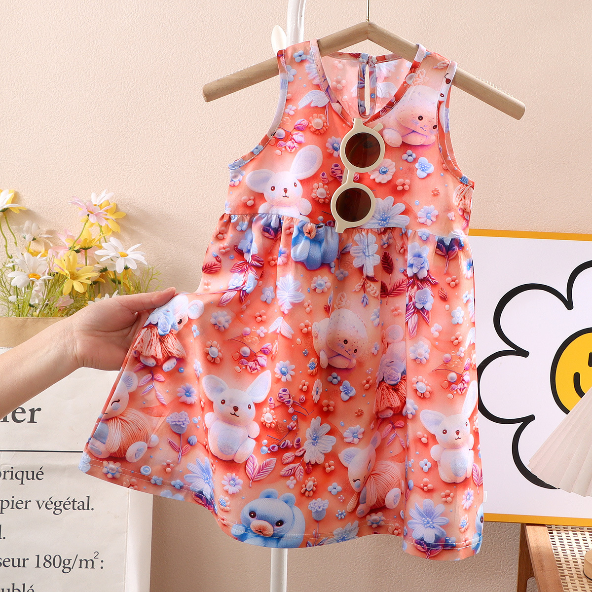 소녀 3D 3 차원 인쇄 스트랩 원피스 여름 얇은 소녀 민소매 조끼 원피스 아기 꽃 긴 원피스스토어 가기