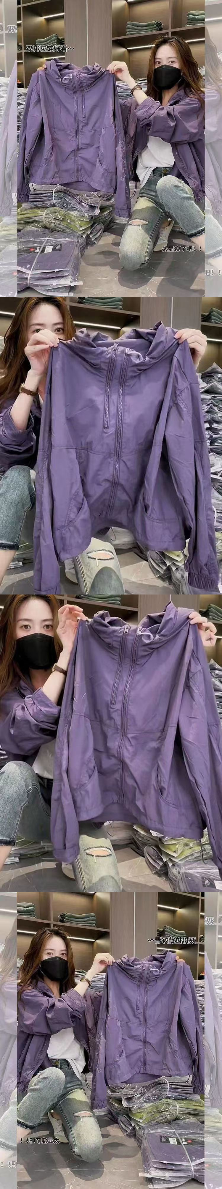 2025 여름 새로운 여성 서양식 보라색 태양 보호 의류 느슨한 얇은 후드 캐주얼 태양 보호 재킷스토어 가기