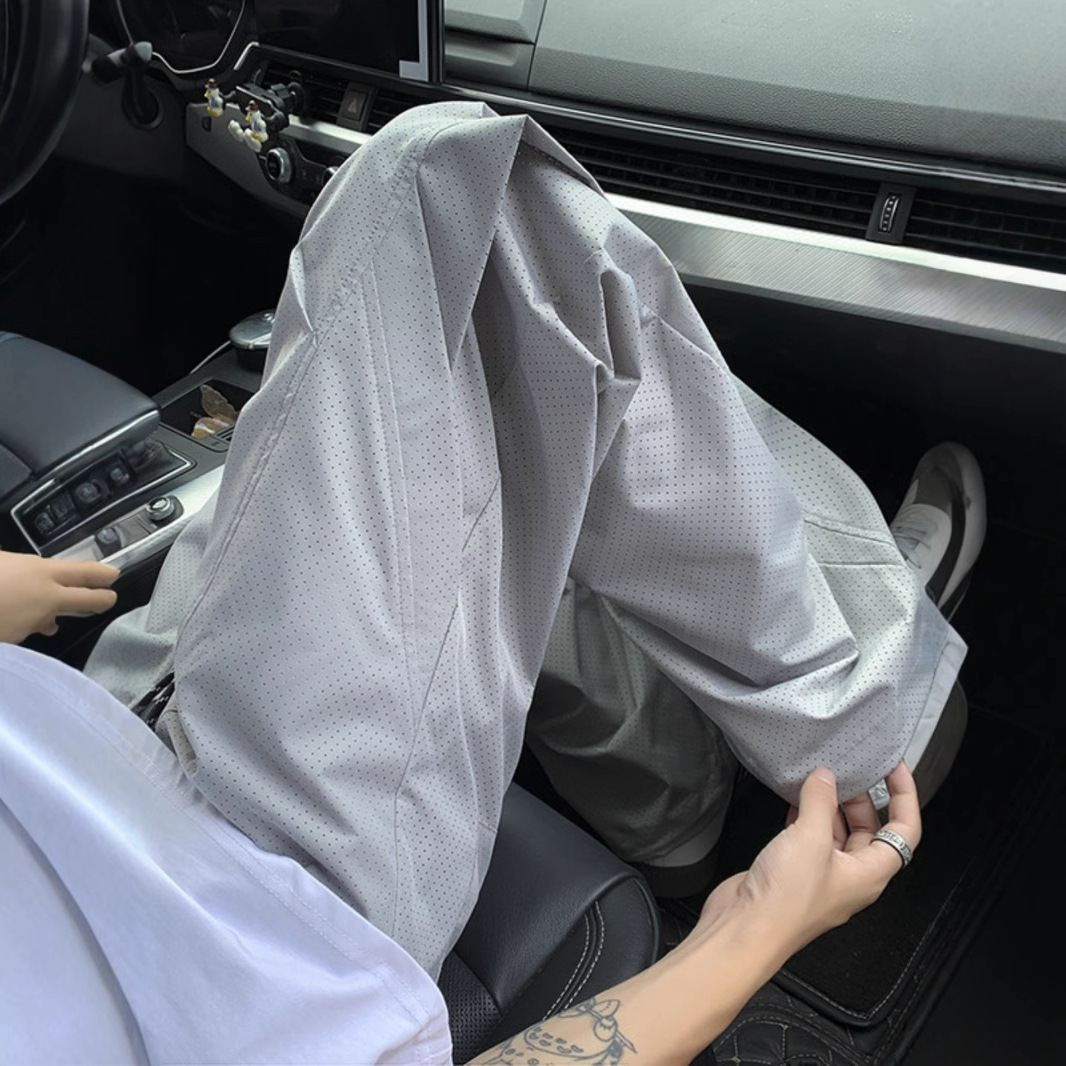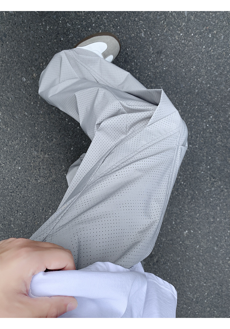 회색 흰색 선 스크린 크록 바지 남자 여름 아이스 실크 얇은 통기성 메쉬 빠른 건조 바지 미국식 마체테 바지스토어 가기