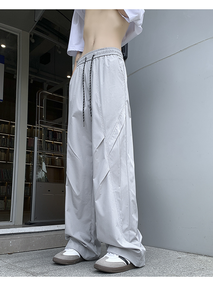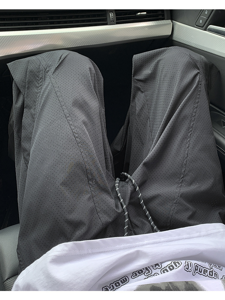 회색 흰색 선 스크린 크록 바지 남자 여름 아이스 실크 얇은 통기성 메쉬 빠른 건조 바지 미국식 마체테 바지