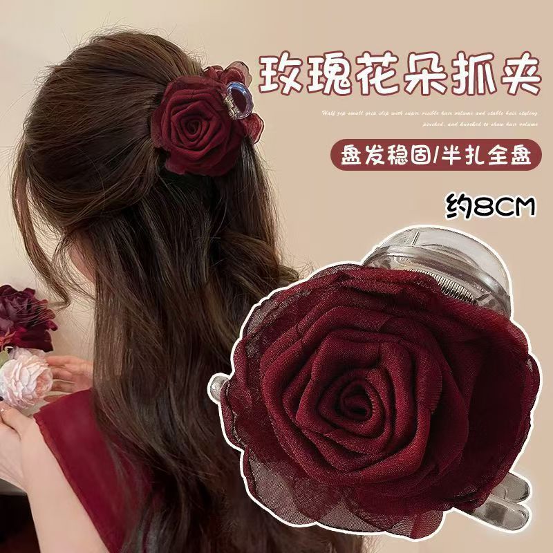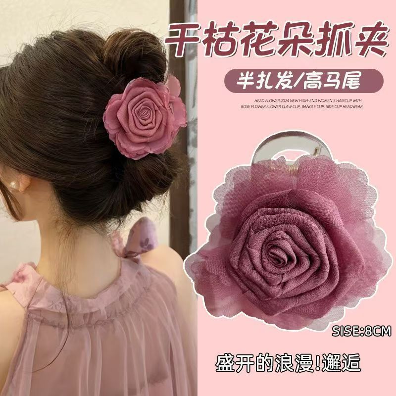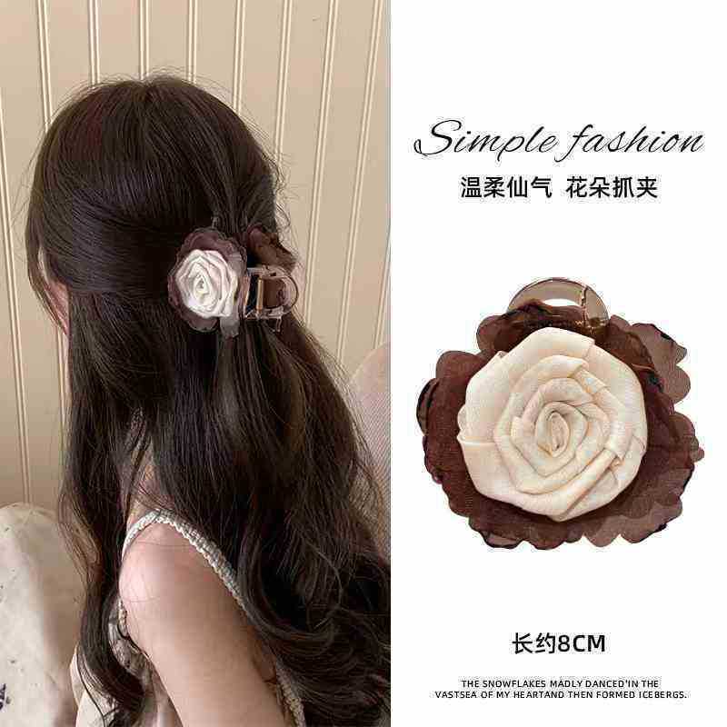꽃 반 넥타이 헤어 클립 여성의 머리 뒷면 새로운 중국 스타일 골동품 드라이 로즈 클립 분위기 상어 클립스토어 가기
