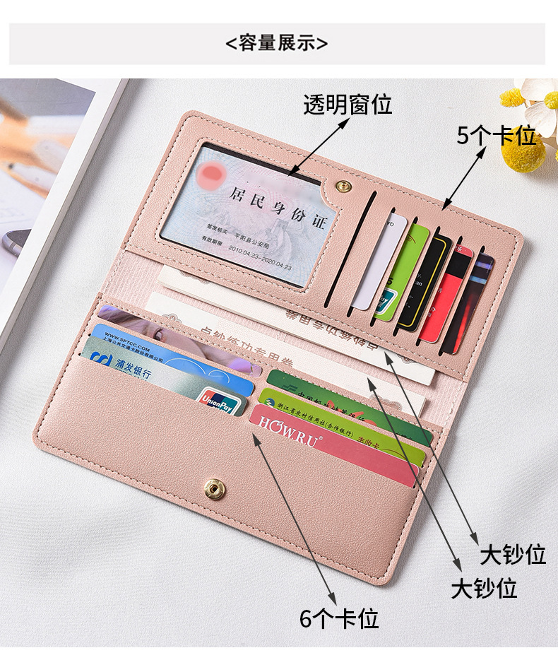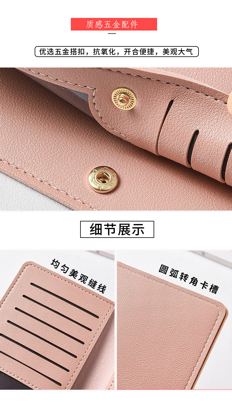 지갑 여성용 긴 지갑 경량 여성용 스냅 간단한 동전 지갑 멀티 카드 대용량 2 배 핸드백