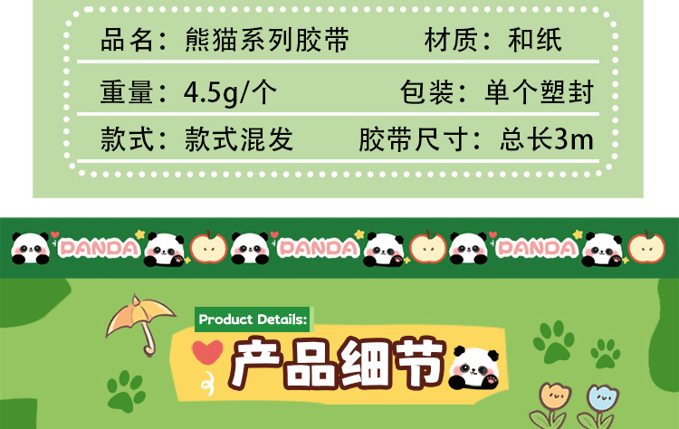 귀여운 팬더 핸드북 테이프 학생 만화 수제 재료 스티커 고가치 조경 보상 문구 테이프스토어 가기
