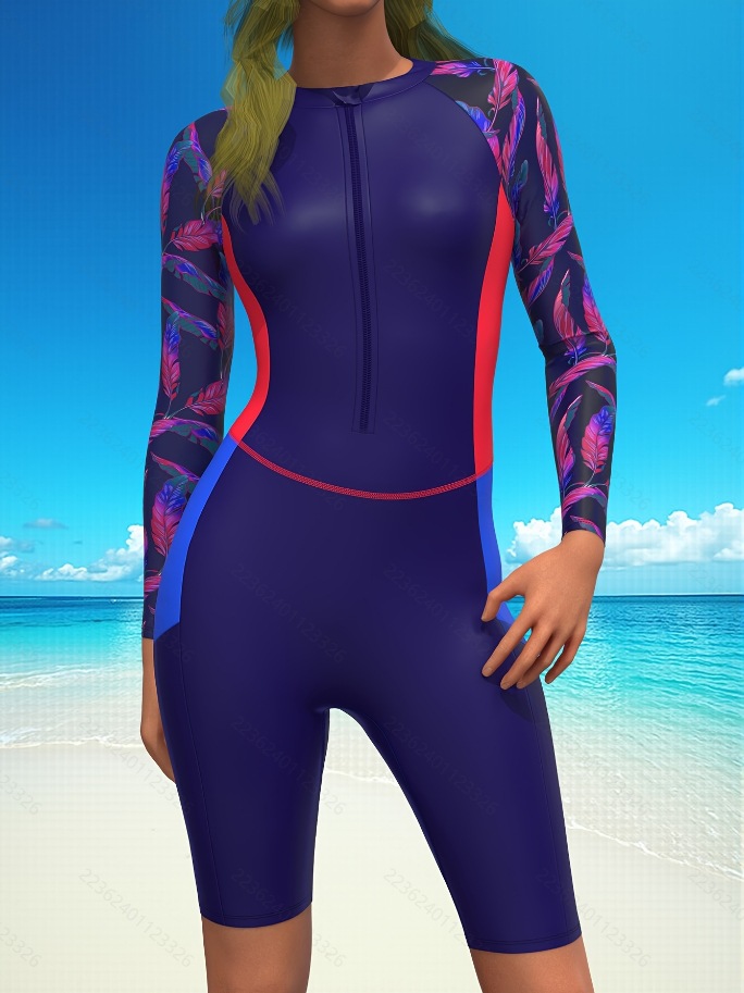 2025 새로운 여성의 꽃 인쇄 긴팔 반바지 수영복 여성