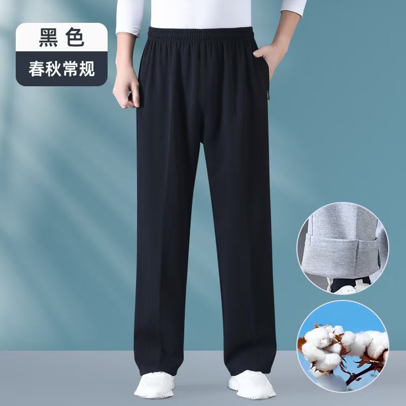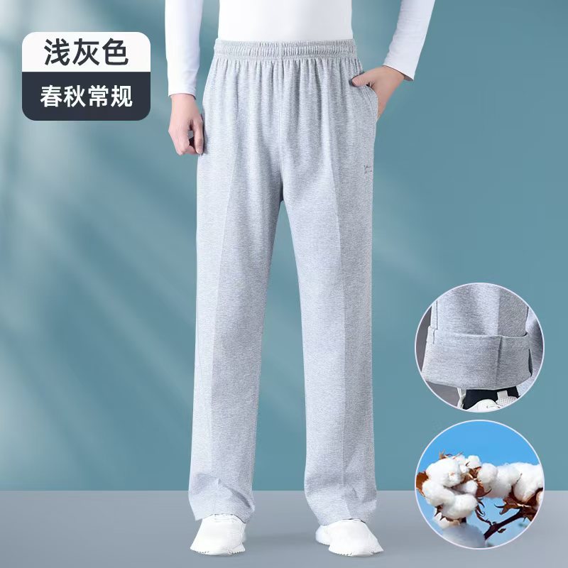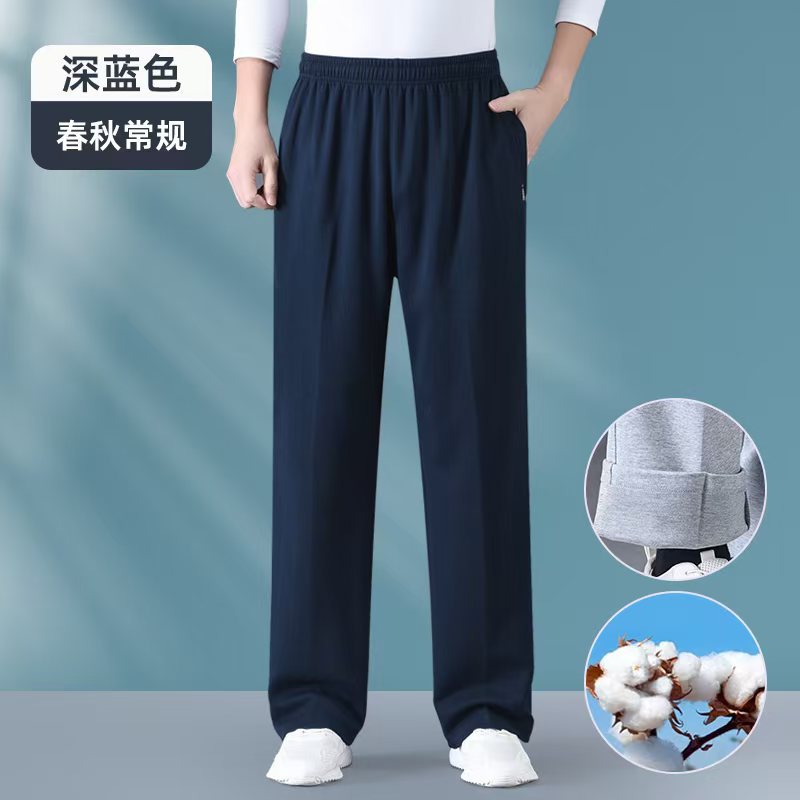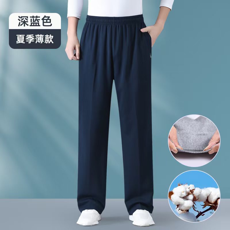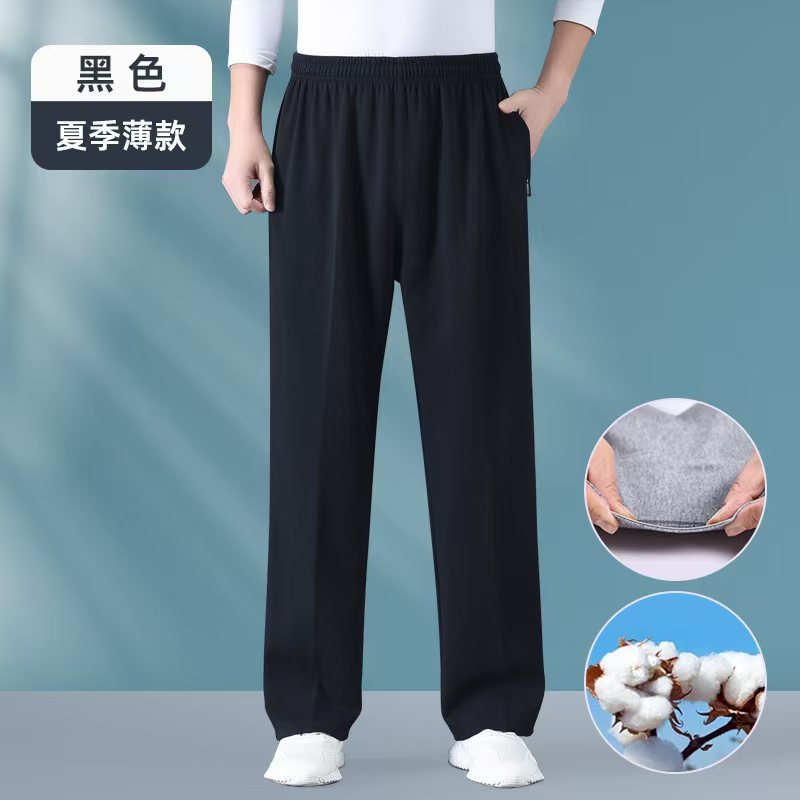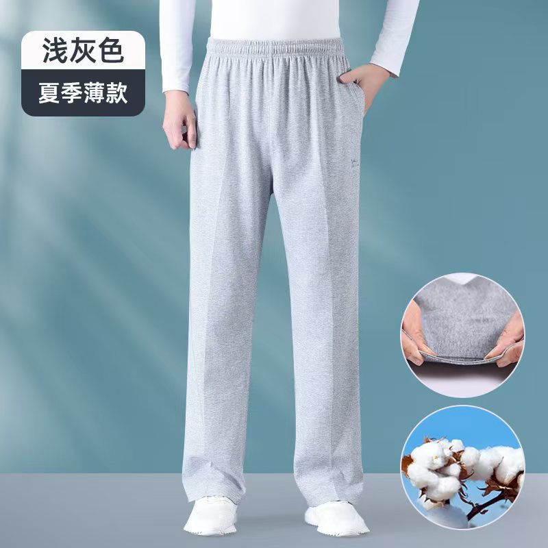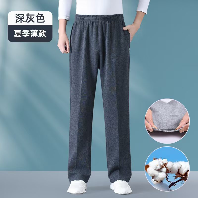 여름 중년 및 노인 남성 얇은 스포츠 바지 아빠의 순수면 캐주얼 바지 장로의 엘리트 허리 바지 가드 바지