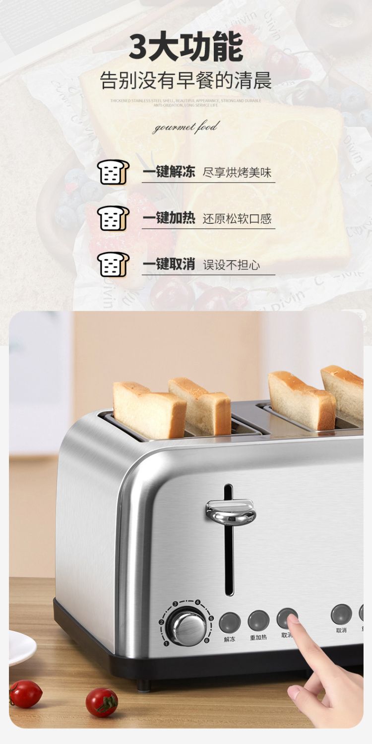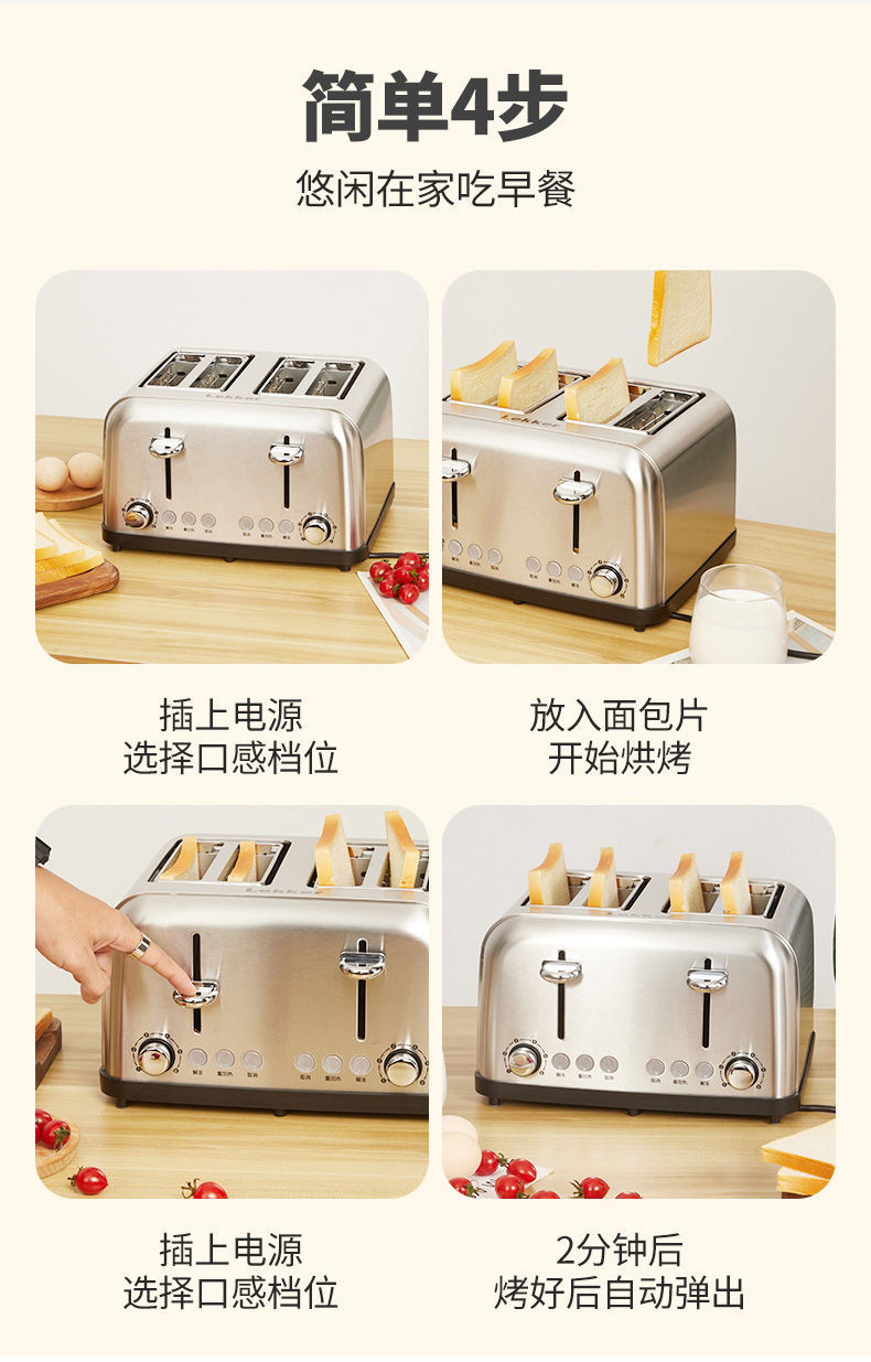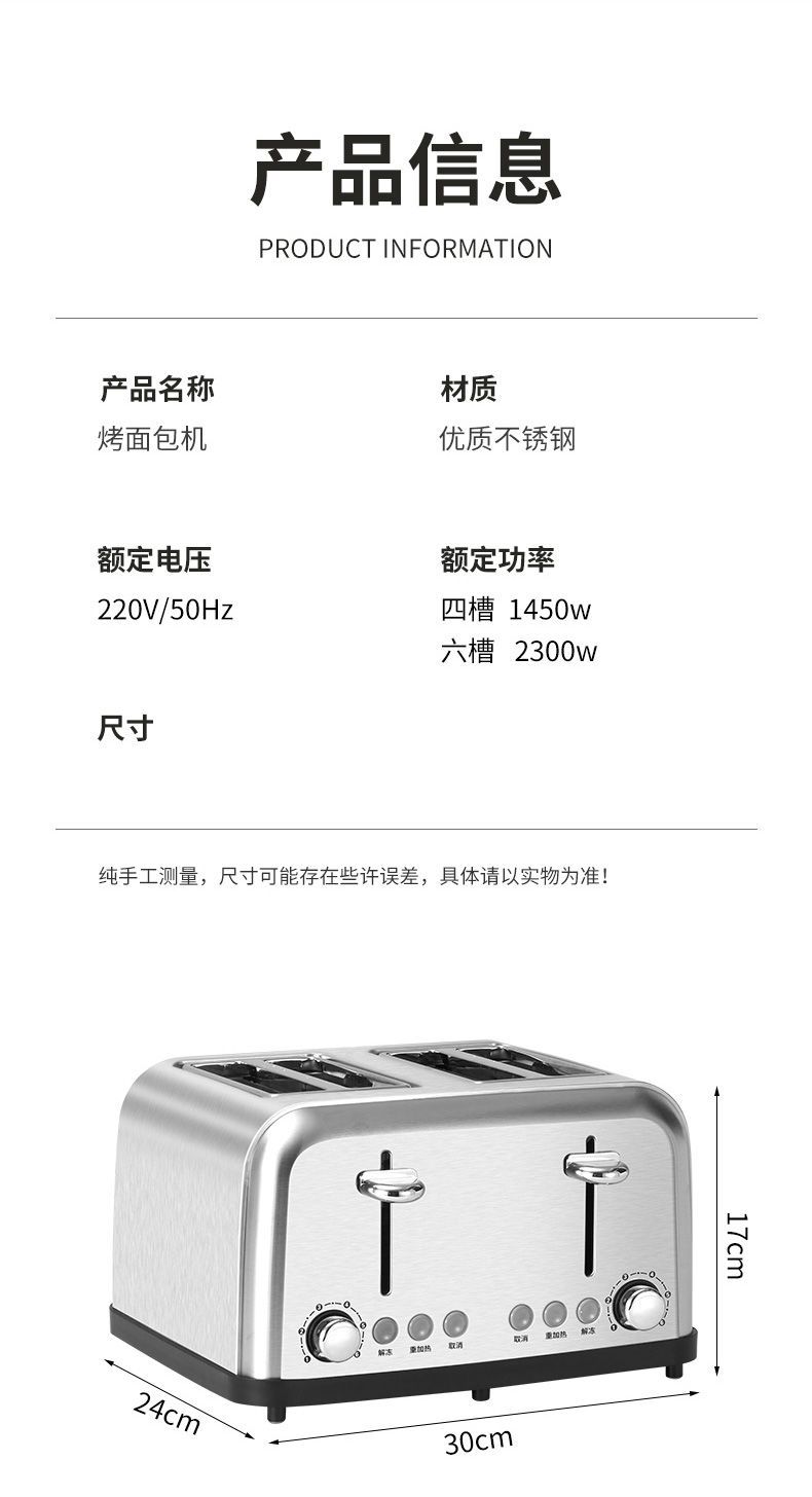 토스터, 상업용 4슬라이스, 6슬라이스 토스터, 빵빵 가열기, 샌드위치 베이킹기, 빵빵 기계스토어 가기