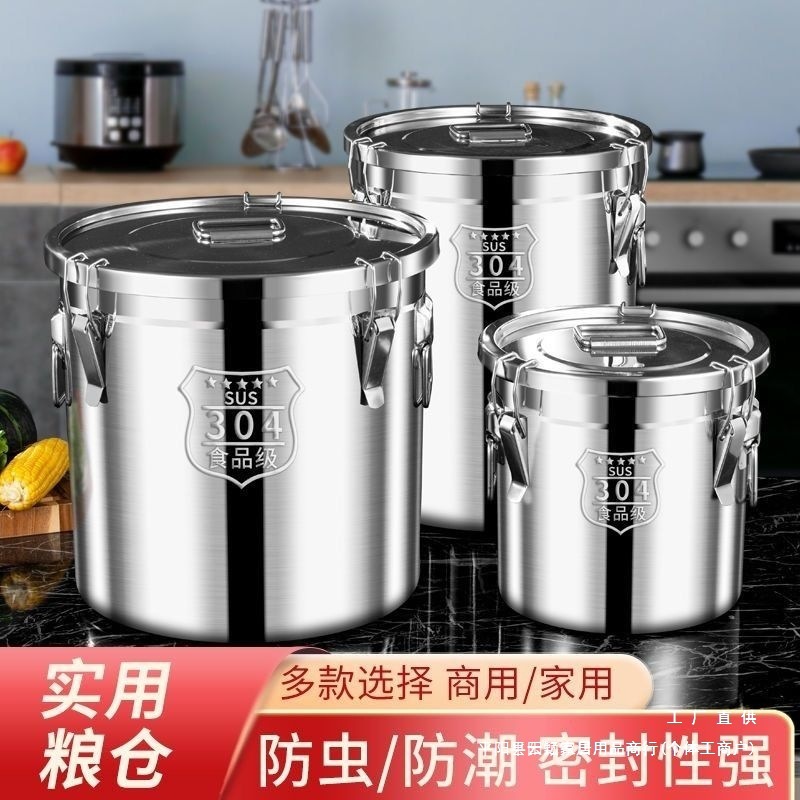 304 밀봉 쌀통 스테인레스 스틸 밀가루 통 가정용 25kg 방습 및 방충 곡물 저장 쌀통 쌀스토어 가기