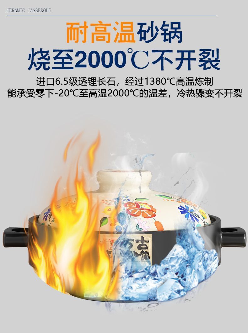 넓은 입 볶음 캐서롤 수프 냄비 가정용 고온 내성 건조 연소 냄비 쌀 가스 스토브 찐 세라믹 뜨거운 냄비 캐서롤