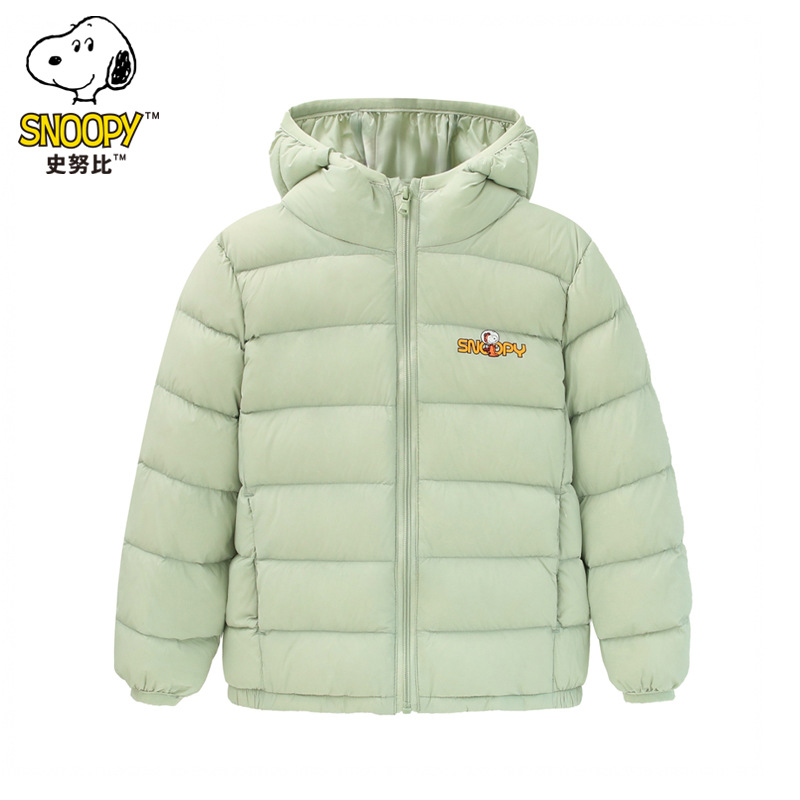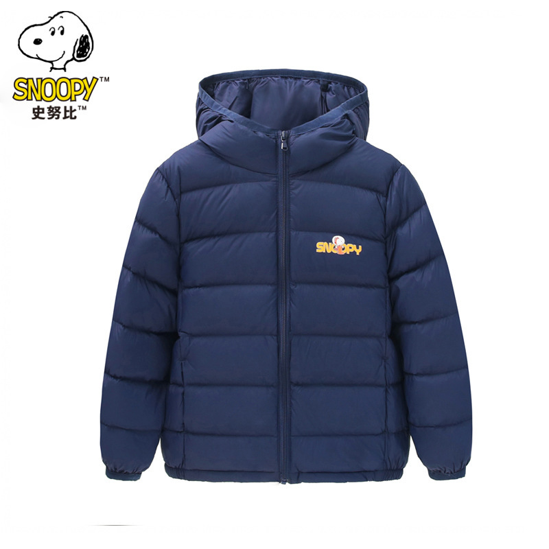 가을 겨울 소년 소녀를위한 스누피 어린이 경량 따뜻한 다운 재킷 화이트 덕 다운 재킷 후드 어린이 다운 재킷