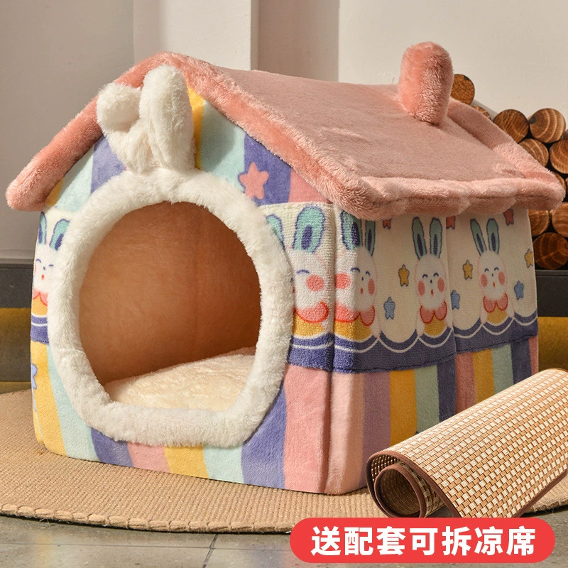 사계절용 개집, 밀폐형 고양이집, 빌라, 중소형 탈부착 및 세탁 가능, 겨울 따뜻한 고양이 침대 수면매트 도매